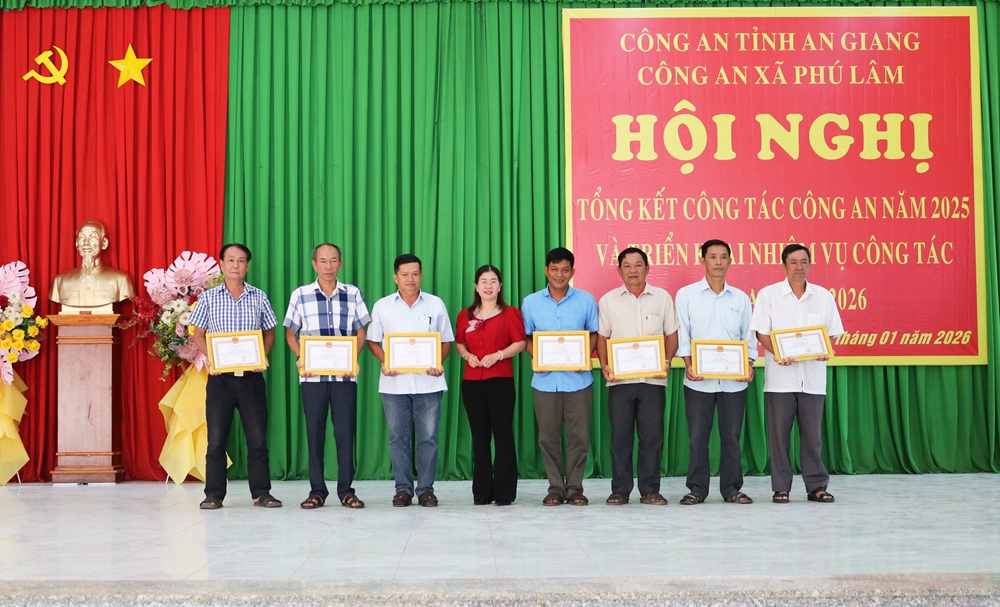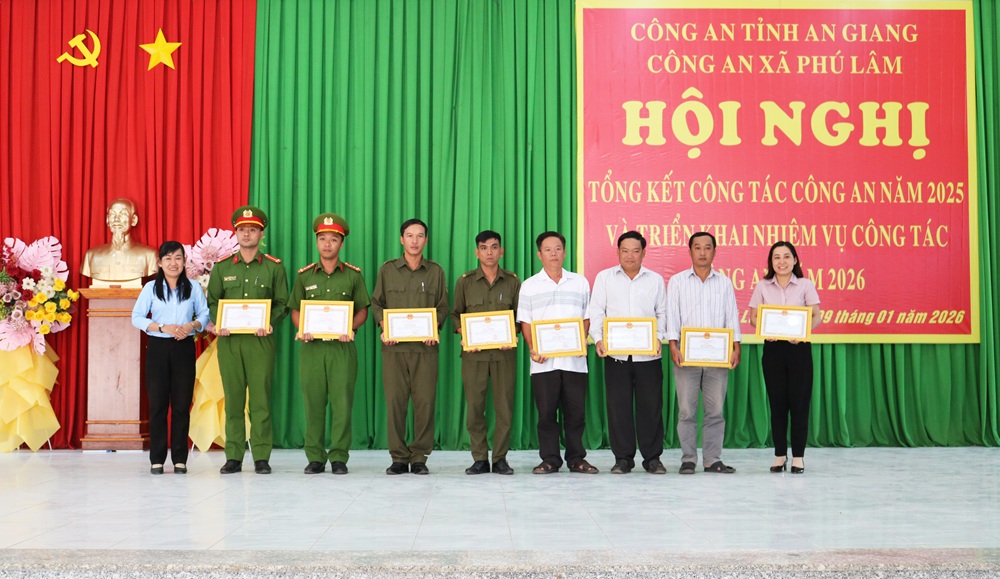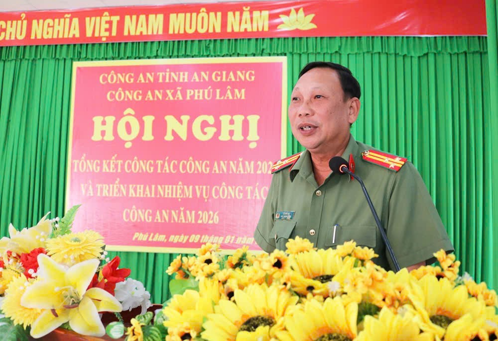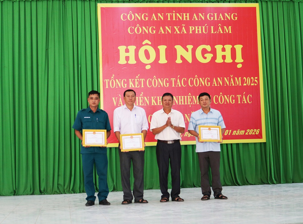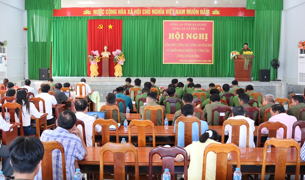Chiều ngày 9/1/2026, Công an xã Phú Lâm, tỉnh An Giang tổ chức Hội nghị tổng kết công tác Công an năm 2025 và triển khai nhiệm vụ công tác Công an năm 2026. Đến dự Hội nghị có Đồng chí Lâm Thành Pha, Phó Bí thư thường trực Đảng ủy xã; Đồng chí Lý Thị Lệ Hằng, Phó Chủ tịch thường trực UBND xã; Thượng tá Cù An Khôi, Phó trưởng phòng Công tác chính trị Công an tỉnh; Ban lãnh đạo Công an xã; đại diện các ban ngành, đoàn thể địa phương và cán bộ chiến sĩ Công an xã.