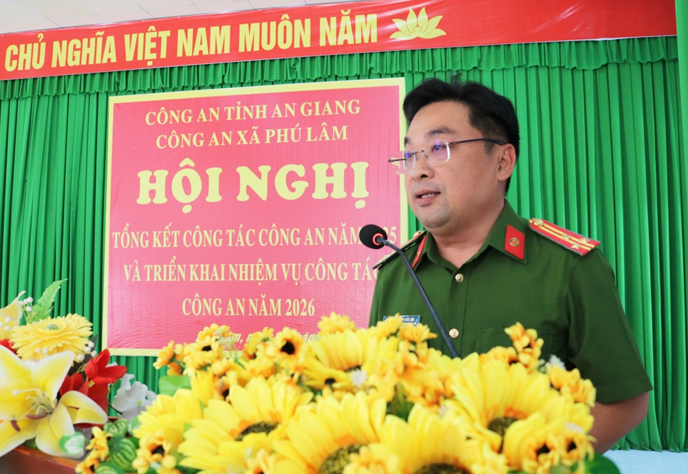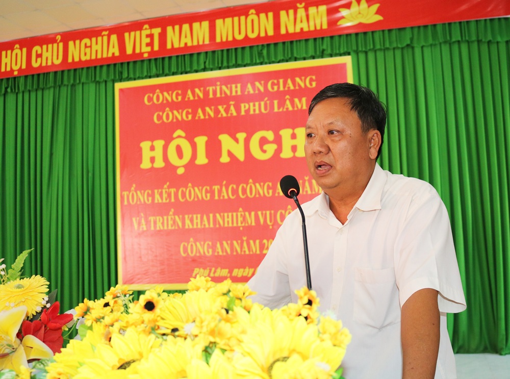 Phát biểu chỉ đạo Hội nghị, đồng chí Lâm Thành Pha, Phó Bí thư thường trực Đảng ủy xã đã biểu dương, ghi nhận những thành tích và kết quả mà Công an xã Phú Lâm đạt được trong năm 2025. Đồng thời, đồng chí Phó Bí thư Đảng ủy xã yêu cầu trong thời gian tới Công an xã Phú Lâm tiếp tục tham mưu cho Đảng ủy, UBND xã làm tốt công tác bảo đảm an ninh, trật tự, chủ động nắm chắc tình hình, giải quyết dứt điểm những vấn đề phát sinh ngay từ cơ sở, không để bị động, bất ngờ trong mọi tình huống; quyết liệt đấu tranh phòng, chống tội phạm; hoàn thành tốt các chỉ tiêu công tác đã đặt ra; tiếp tục phát huy các ưu điểm, nghiêm túc chấn chỉnh, khắc phục các mặt còn tồn tại, hạn chế, làm trong sạch địa bàn, góp phần vào sự phát triển kinh tế xã hội của địa phương.