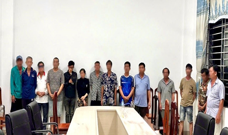 Các đối tượng tham gia đánh bạc, tin ảnh Công an xã Phú Tân