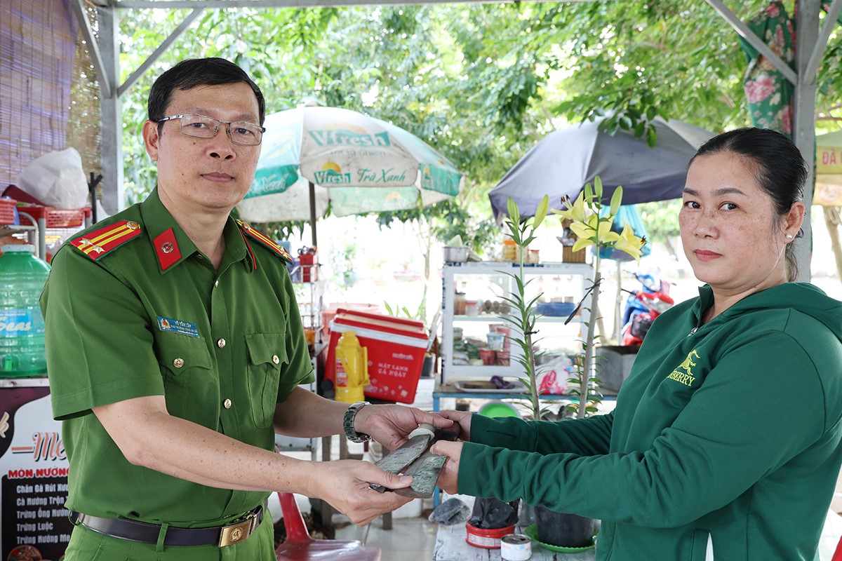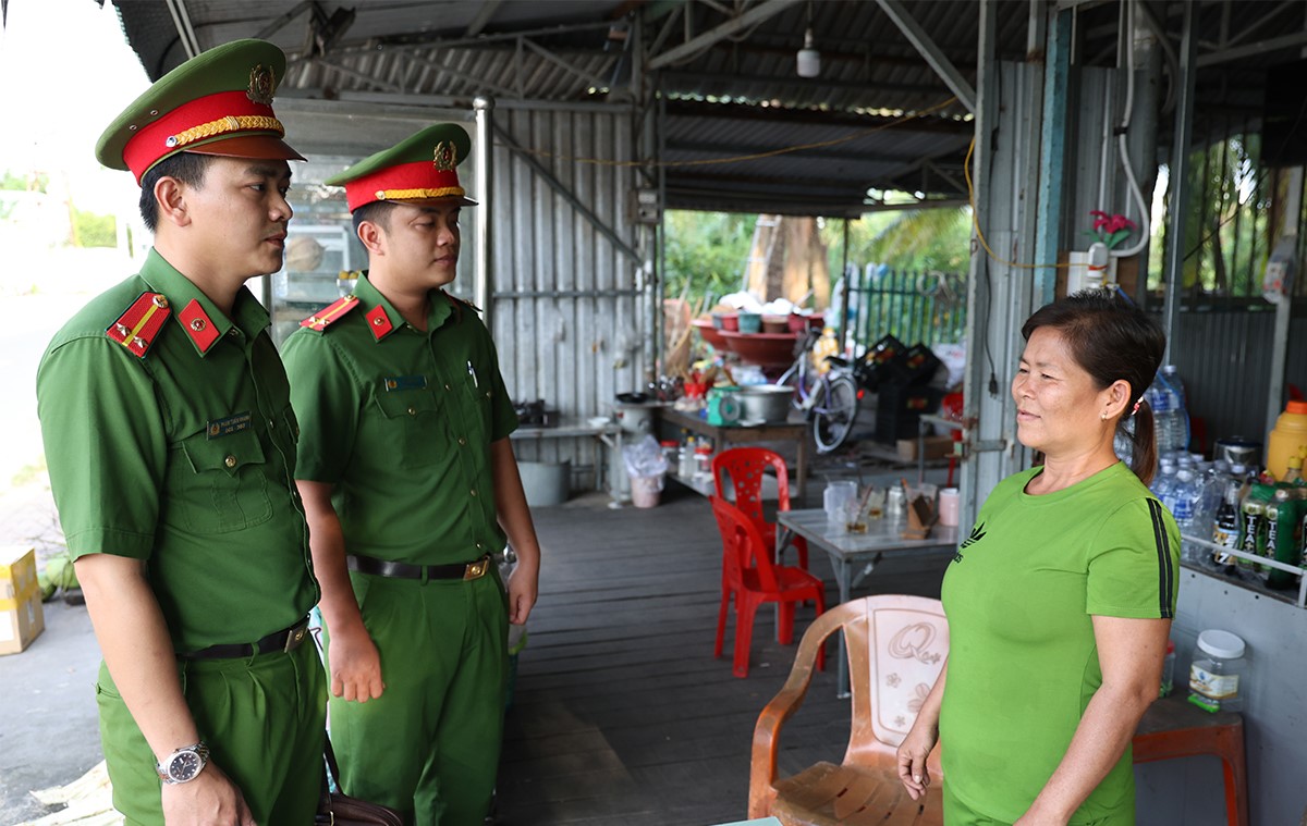 Bên cạnh đó, Công an xã còn tăng cường công tác “đi từng ngõ, gõ từng nhà, rà từng đối tượng”, trực tiếp gặp gỡ, vận động các hộ dân, nhất là những hộ dân có khả năng còn cất giữ các loại công cụ hỗ trợ, dao tự chế. Chính từ việc kiên trì trong công tác tuyên truyền vận động, nhiều người dân đã tự giác giao nộp các loại dao tự chế đang cất giữ. Chị Huỳnh Thị Ngọc Thảo (cư trú xã Phú Tân, tỉnh An Giang) chia sẻ: “Chiều em đi làm về em thấy 02 cây dao trong bụi cây bên đường nên em lượm đem về, em không biết là nguy hiểm. Hôm nay lực lượng Công an xã đến nhà tuyên truyền, vận động, em biết nên em giao nộp cho Công an xã”.