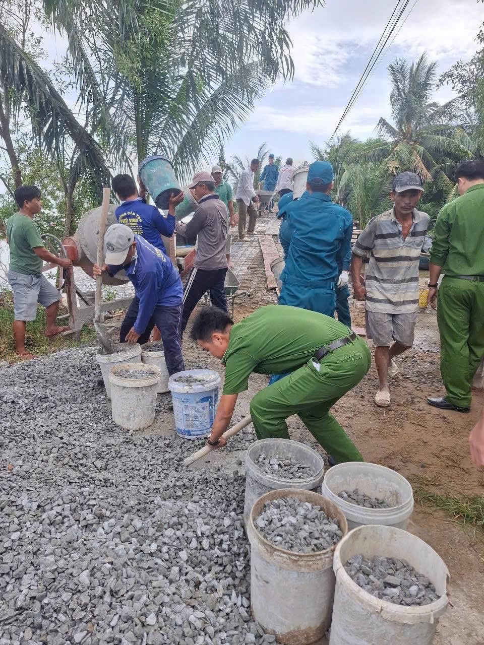 Sát cánh cùng Nhân dân trong xây dựng nông thôn mới, lực lượng Công an xã Tân Thạnh, tỉnh An Giang không chỉ giữ vững an ninh trật tự mà còn trực tiếp lao động, góp sức cùng người dân làm đường, xây cầu, mang lại diện mạo mới cho vùng quê.
