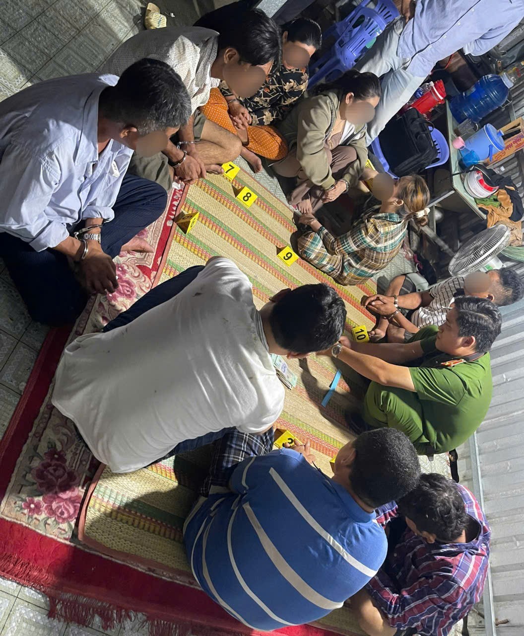 Trước đó, qua nguồn tin phản ánh của quần chúng nhân dân, thời gian gần đây tại tổ 6 ấp Mương Chùa, xã Tây Yên, tỉnh An Giang có một số đối tượng thường xuyên tụ tập đánh bạc gây mất an ninh trật tự. Trước tình hình trên Công an xã Tây Yên đã phối hợp với Phòng Cảnh sát hình sự tiến hành kiểm tra, bắt quả tang 09 đối tượng đang tham gia đánh bạc dưới hình thức đánh bài cào 03 lá ăn thua bằng tiền, tang vật thu giữ gồm 04 bộ bài tây đã qua sử dụng, hơn 07 triệu đồng và nhiều tang vật khác.
