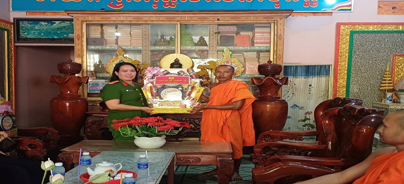 Công an xã Thạnh Lộc thăm, tặng quà chùa Tà Bết nhân dịp Tết Chôl Chnăm Thmây