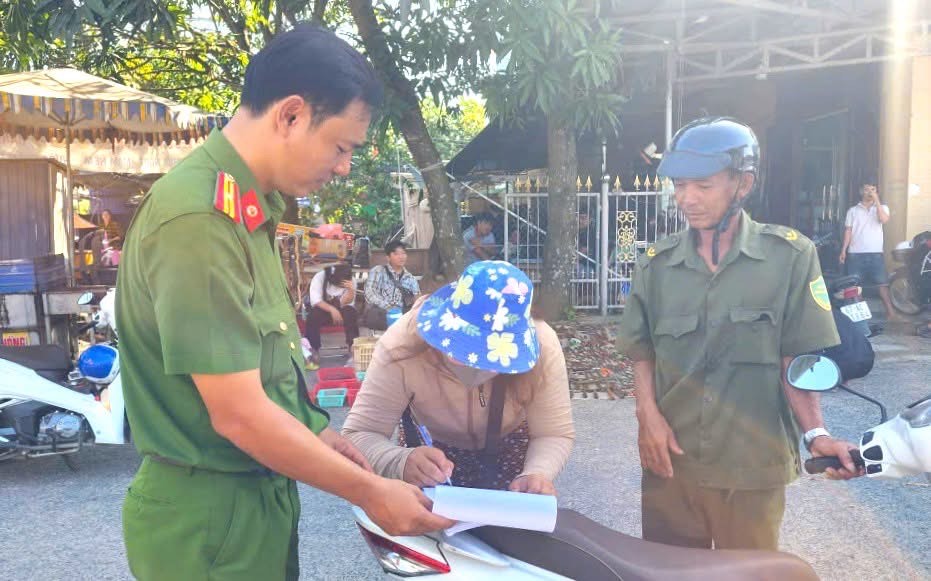 Lực lượng Công an xã ra quân lập lại trật tự, lòng, lề đường, vỉa hè và tuyên truyền pháp luật đến người dân