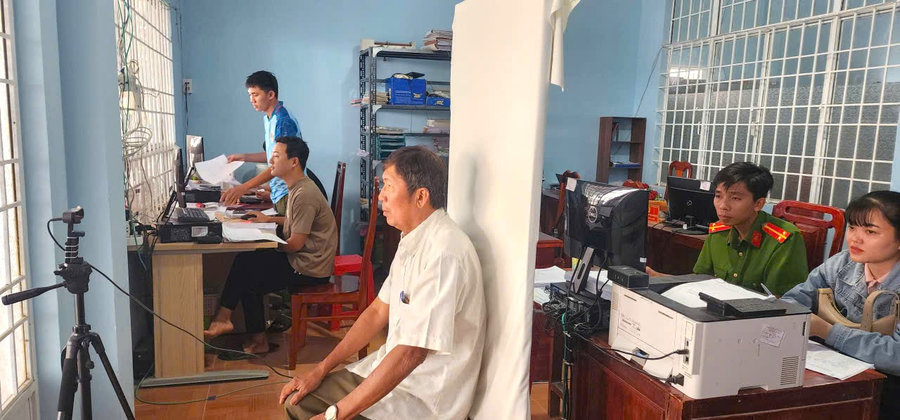 Đảng viên trên địa bàn đến Công an Thạnh Mỹ Tây làm thẻ đảng điện tử
