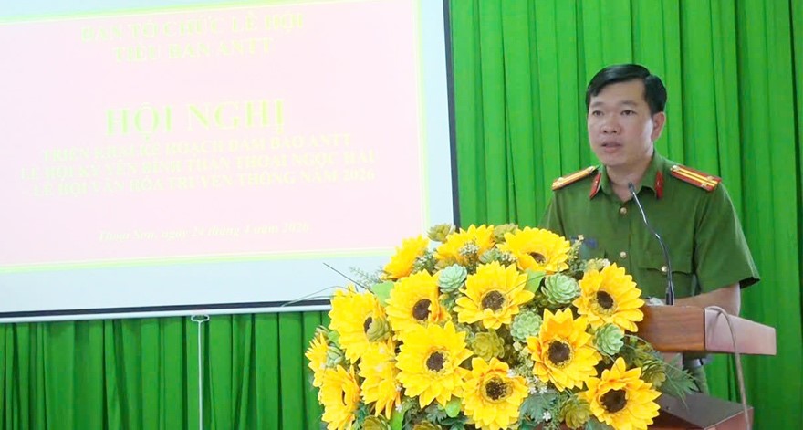 Phát biểu tại hội nghị, đồng chí Trung tá Phạm Hồng Khá, Trưởng Công an xã Thoại Sơn yêu cầu toàn lực lượng nâng cao tinh thần trách nhiệm, chủ động phối hợp với các ban, ngành, đoàn thể, triển khai đồng bộ các biện pháp nghiệp vụ; đảm bảo tuyệt đối an ninh, an toàn trước, trong và sau Lễ hội, tạo ấn tượng tốt đẹp đối với Nhân dân và du khách thập phương về tham gia Lễ hội Kỳ yên Đình thần Thoại Ngọc Hầu năm 2026.