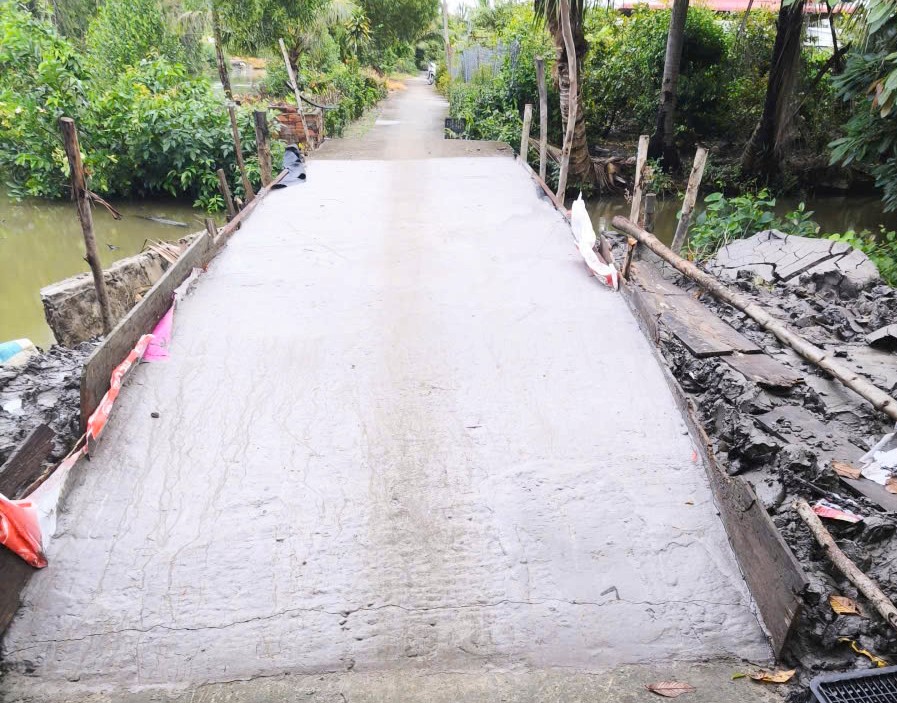 Cụ thể, trước tình trạng cầu dân sinh tại ấp Bình Thành bị sập do mưa bão, Đoàn viên Công an xã đã phối hợp với Ban lãnh đạo ấp và người dân khẩn trương tổ chức khắc phục. Qua vận động, lực lượng đã huy động được 15 triệu đồng từ mạnh thường quân và Nhân dân để mua vật liệu xây dựng; đồng thời trực tiếp tham gia sửa chữa cầu dài 15m, rộng 2,2m với 35 ngày công lao động, tổng trị giá đóng góp 25,5 triệu đồng, bảo đảm việc đi lại an toàn cho người dân.