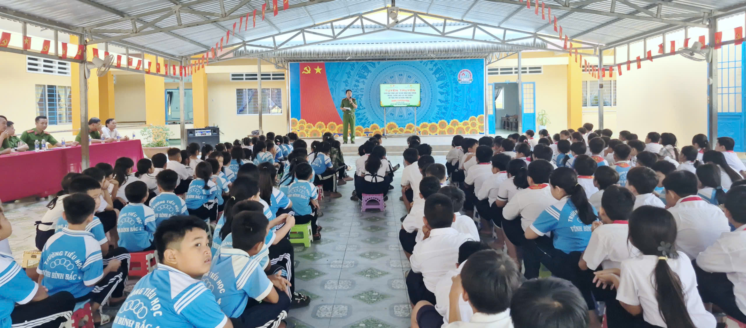 Ngày 03/02, Công an xã Vĩnh Bình phối hợp với Trường Tiểu học Vĩnh Bình Bắc 4 tổ chức buổi tuyên truyền, phổ biến pháp luật cho cán bộ, giáo viên và học sinh nhà trường. Buổi tuyên truyền thu hút sự tham gia của hơn 250 cán bộ, giáo viên và học sinh.