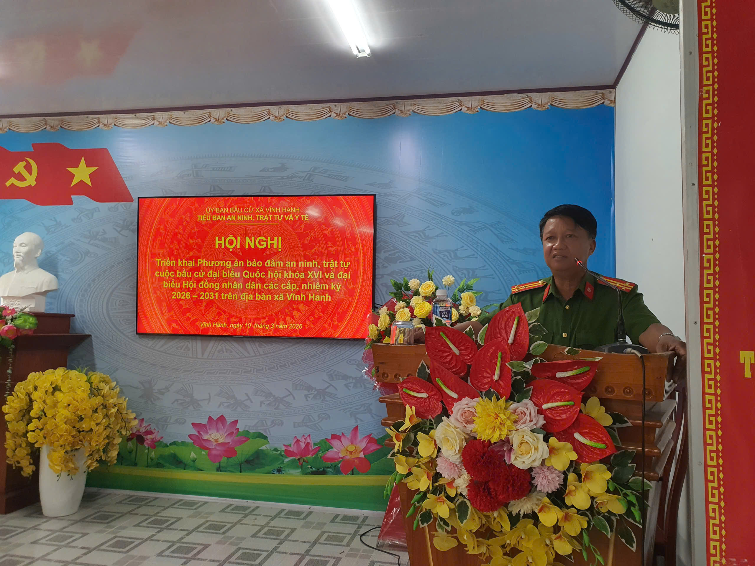 Theo phương án được triển khai tại hội nghị, địa bàn xã Vĩnh Hanh thuộc đơn vị bầu cử số 12 của tỉnh, được bố trí 07 đơn vị bầu cử với 11 điểm bỏ phiếu đặt tại Văn phòng Ban Nhân dân của 11 ấp trên địa bàn xã. Trên cơ sở đó, Công an xã đã xây dựng kế hoạch cụ thể, phân công lực lượng nắm chắc tình hình địa bàn, chủ động phòng ngừa, phát hiện và xử lý kịp thời các hành vi vi phạm pháp luật có thể ảnh hưởng đến công tác bầu cử.