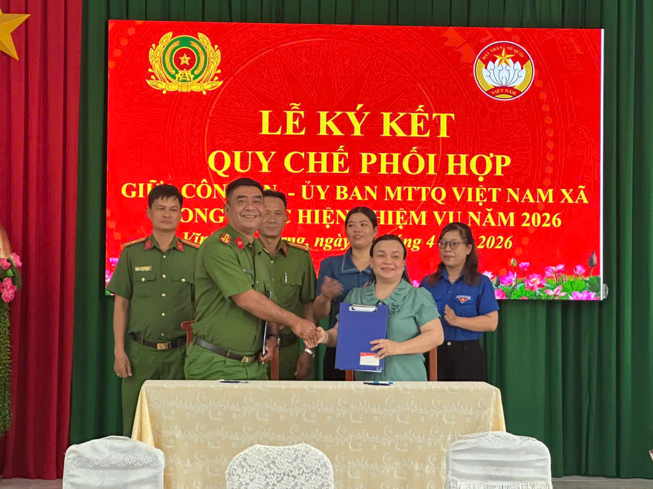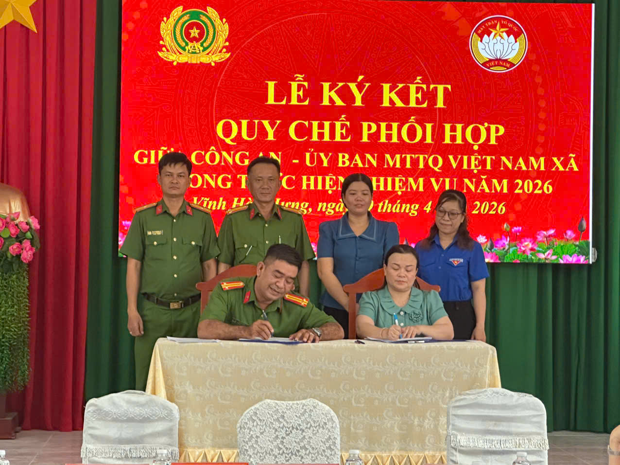Công an xã Vĩnh Hòa Hưng ký kết quy chế phối hợp với Ủy ban Mặt trận Tổ quốc Việt Nam và các tổ chức chính trị - xã hội