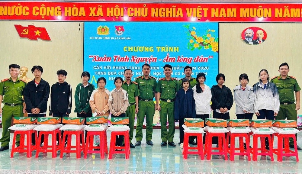 Sáng ngày 04/01/2026, Chi đoàn Công an xã Vĩnh Hòa tổ chức chương trình “Xuân tình nguyện - Ấm lòng dân” nhằm trao tặng nhiều phần quà ý nghĩa cho các em học sinh có hoàn cảnh khó khăn trên địa bàn.