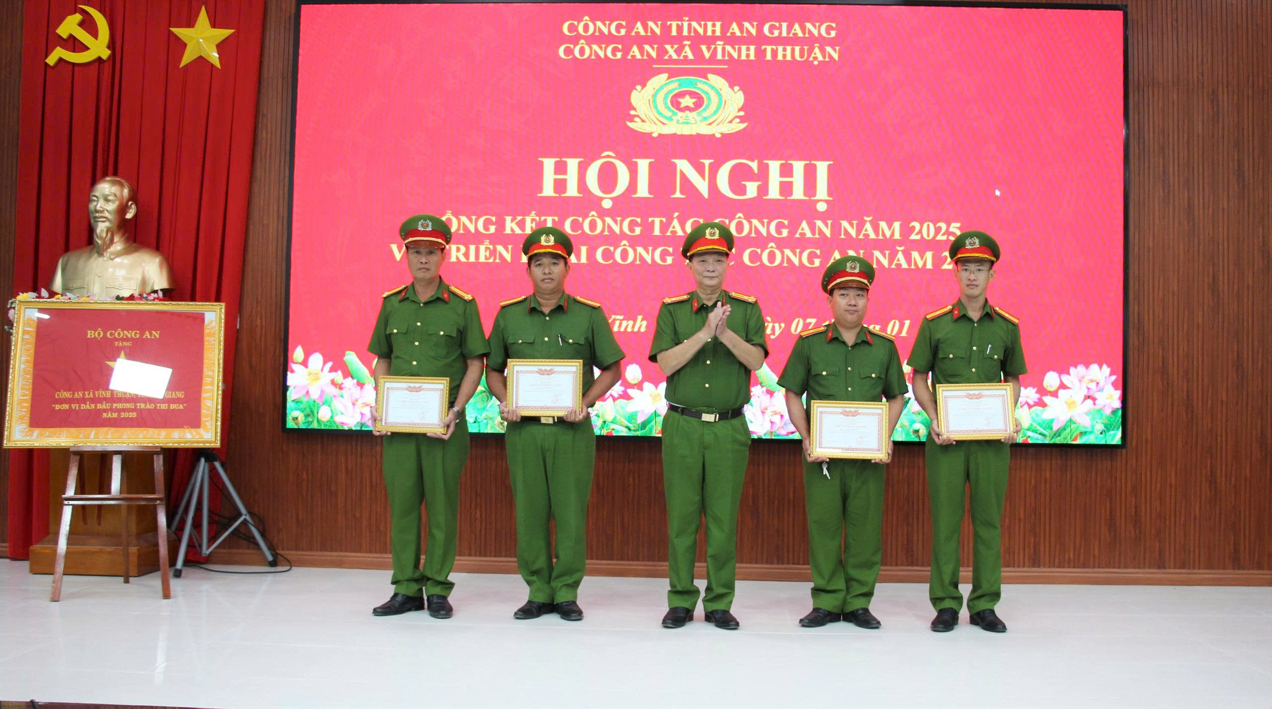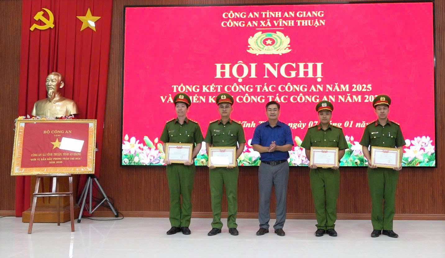 Với những kết quả nổi bật, trong trào thi đua “Vì ANTQ” năm 2025, Công an xã có 08 cán bộ được Giám đốc Công an tỉnh tặng danh hiệu Chiến sĩ thi đua cơ sở, 17 cán bộ được tặng danh hiệu Chiến sĩ tiên tiến. Đặc biệt, Công an xã Vĩnh Thuận vinh dự được Bộ Công an tặng Cờ “Đơn vị dẫn đầu phong trào thi đua năm 2025”.
