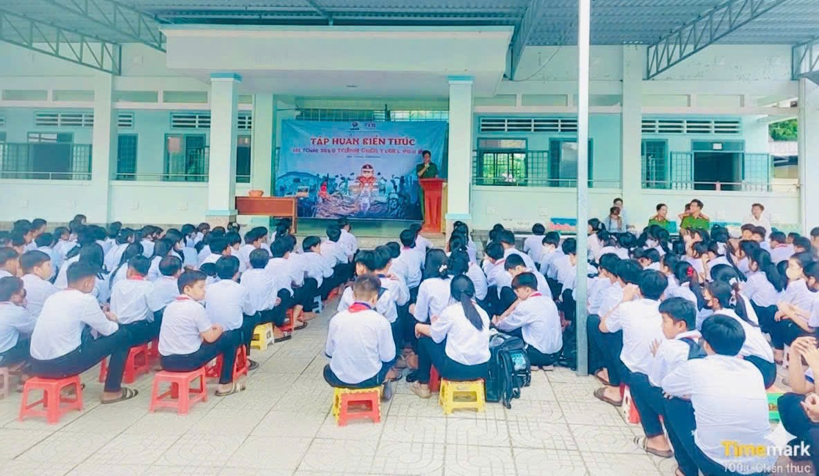 Công an xã Vĩnh Thuận phối hợp với Cửa hàng Yadea Kiên Giang, Ban Giám hiệu Trường Tiểu học & Trung học cơ sở Tân Thuận 2, tổ chức chương trình tuyên truyền, phổ biến, giáo dục pháp luật về an toàn giao thông, phòng, chống ma túy cho hơn 500 em học sinh và cán bộ, giáo viên của nhà trường.