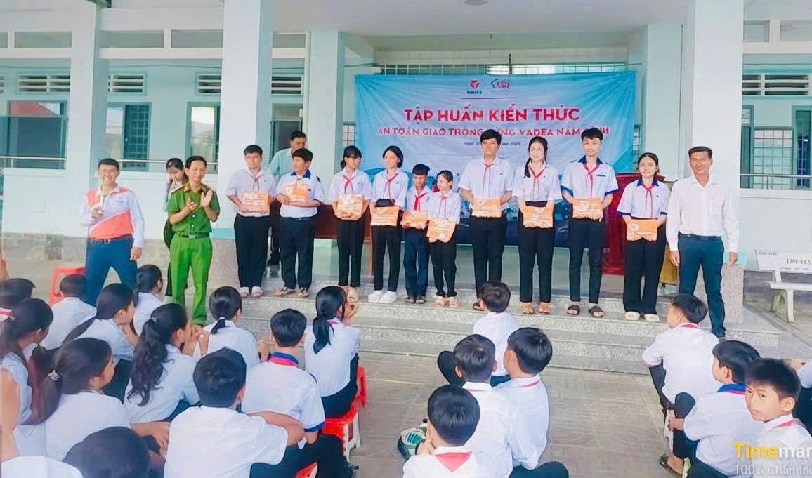 Công an xã đã trực tiếp hướng dẫn cho các em học sinh các kỹ năng cơ bản khi tham gia giao thông, các quy định về sử dụng mũ bảo hiểm đúng quy định… những thủ đoạn tội phạm thường sử dụng để lôi kéo học sinh sử dụng ma tuý hoặc ép buộc mua bán, vận chuyển trái phép ma tuý. Hướng dẫn các em nâng cao cảnh giác và các kỹ năng cơ bản tránh xa tệ nạn ma túy và việc các đối tượng lợi dụng các em sử dụng, vận chuyển ma túy…