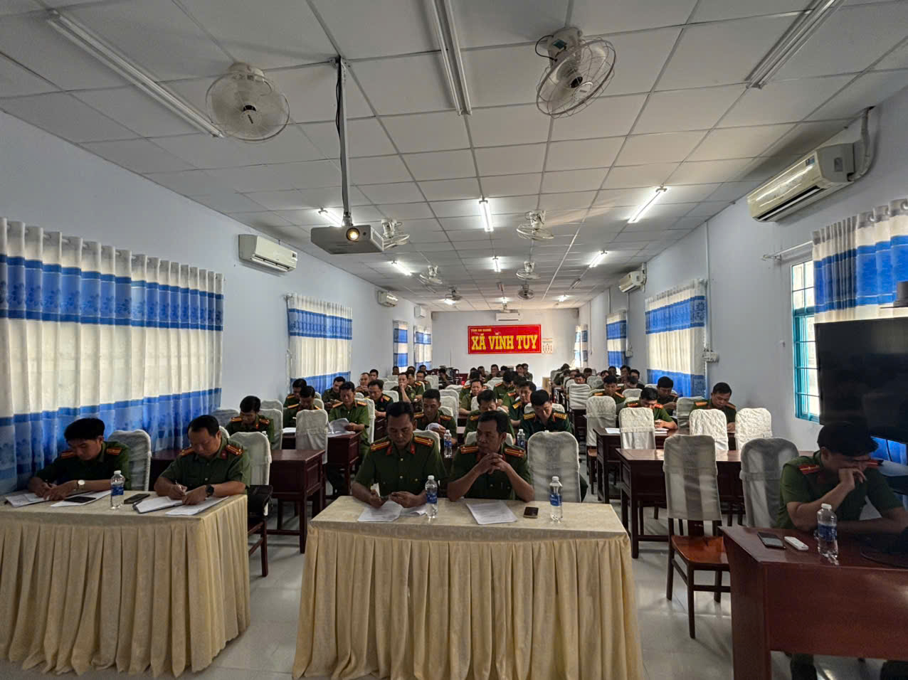 Phát biểu quán triệt nhiệm vụ, Trung tá Hồ Ngọc Thừa, Trưởng Công an xã Vĩnh Tuy, yêu cầu lực lượng tham gia bảo đảm an ninh, trật tự thực hiện nghiêm phương án đã đề ra, chủ động giải quyết các vấn đề phát sinh và không để xảy ra bất ngờ. Đồng chí cũng nhấn mạnh việc tuyên truyền, vận động nhân dân tuân thủ pháp luật và tích cực tham gia bảo vệ an ninh, trật tự trong suốt quá trình bầu cử.