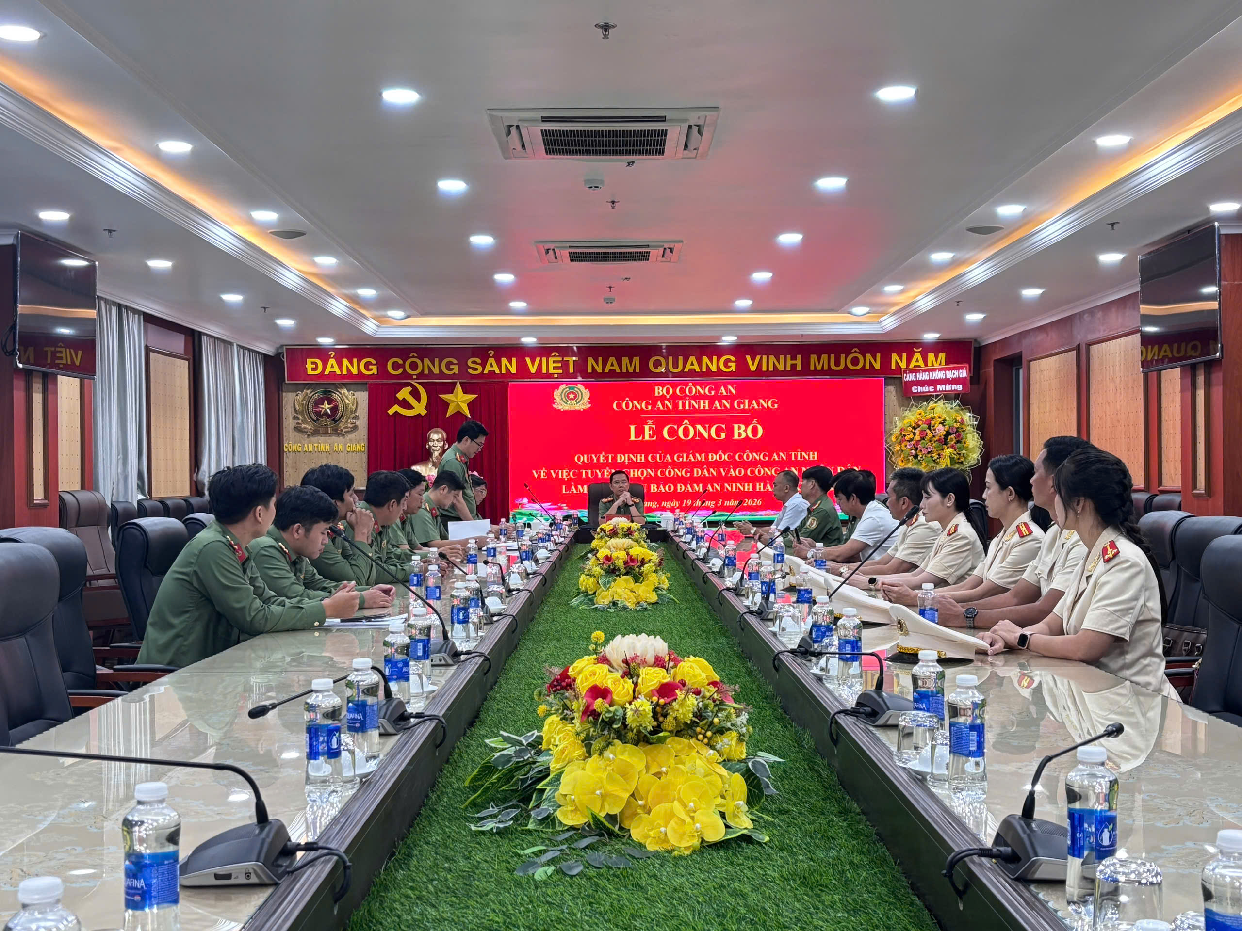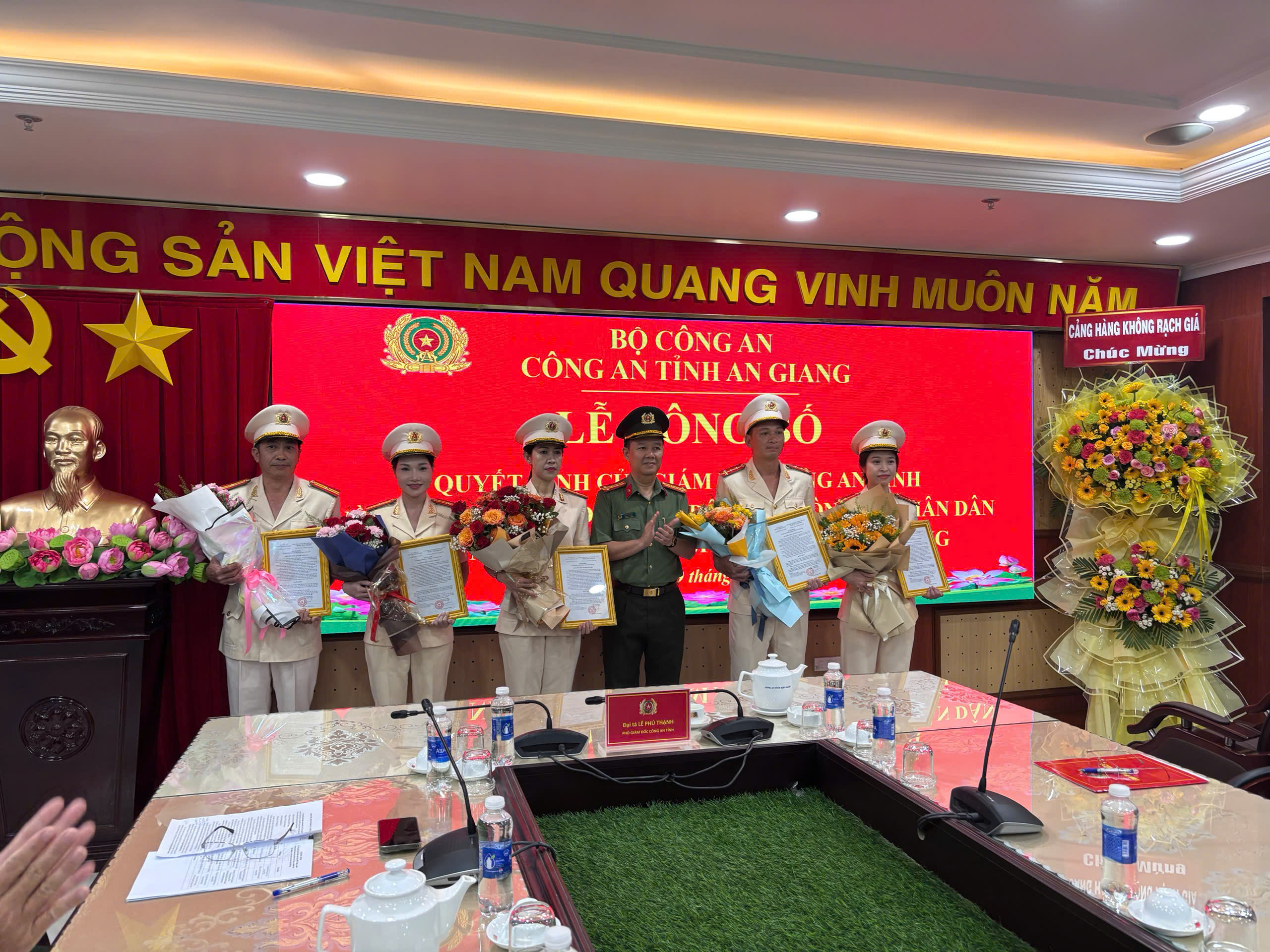 Ngày 19/3/2026, Công an tỉnh An Giang tổ chức Lễ công bố Quyết định của Giám đốc Công an tỉnh về việc tuyển chọn viên chức, nhân viên an ninh hàng không vào Công an nhân dân thực hiện nhiệm vụ bảo đảm an ninh hàng không tại cảng hàng không Rạch Giá. Đại tá Lê Phú Thạnh, Tỉnh uỷ viên, Phó Giám đốc Công an tỉnh chủ trì buổi Lễ.