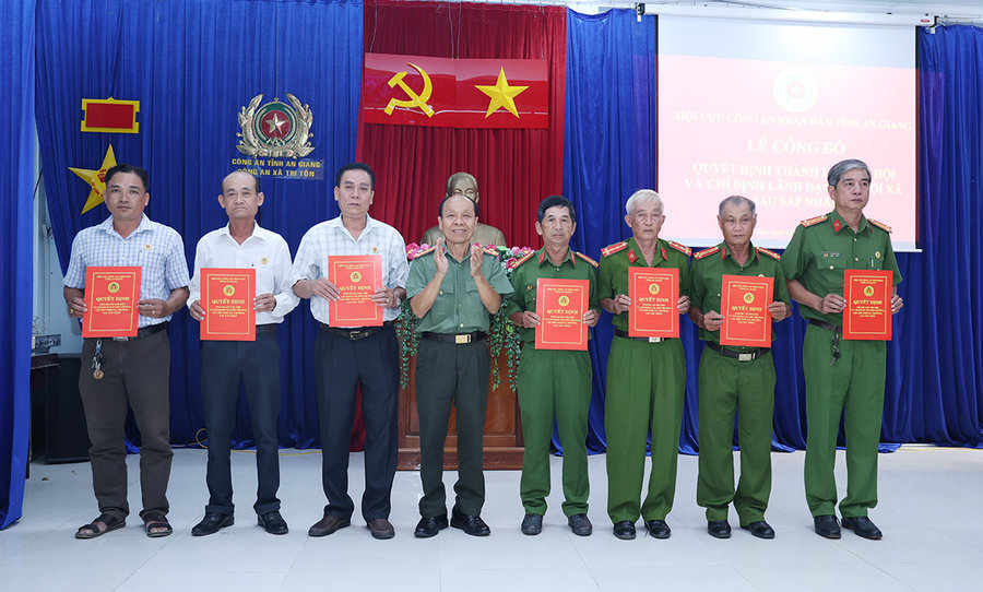 Chiều 11/9/2025, tại Công an xã Tri Tôn, tỉnh An Giang, Hội Cựu Công an nhân dân (CAND) tỉnh tổ chức Lễ công bố và trao quyết định thành lập Chi hội và chỉ định lãnh đạo Chi hội Cựu CAND xã sau sáp nhập. Đại tá Phan Quang Điểm, nguyên Phó Giám đốc Công an tỉnh, Chủ tịch Hội Cựu CAND tỉnh An Giang (cũ) đã đến dự và phát biểu chỉ đạo. Tham dự buổi lễ còn có đại diện lãnh đạo chính quyền địa phương, lãnh đạo phòng Tổ chức cán bộ Công an tỉnh, Công an xã và các hội viên Hội Cựu CAND các xã.