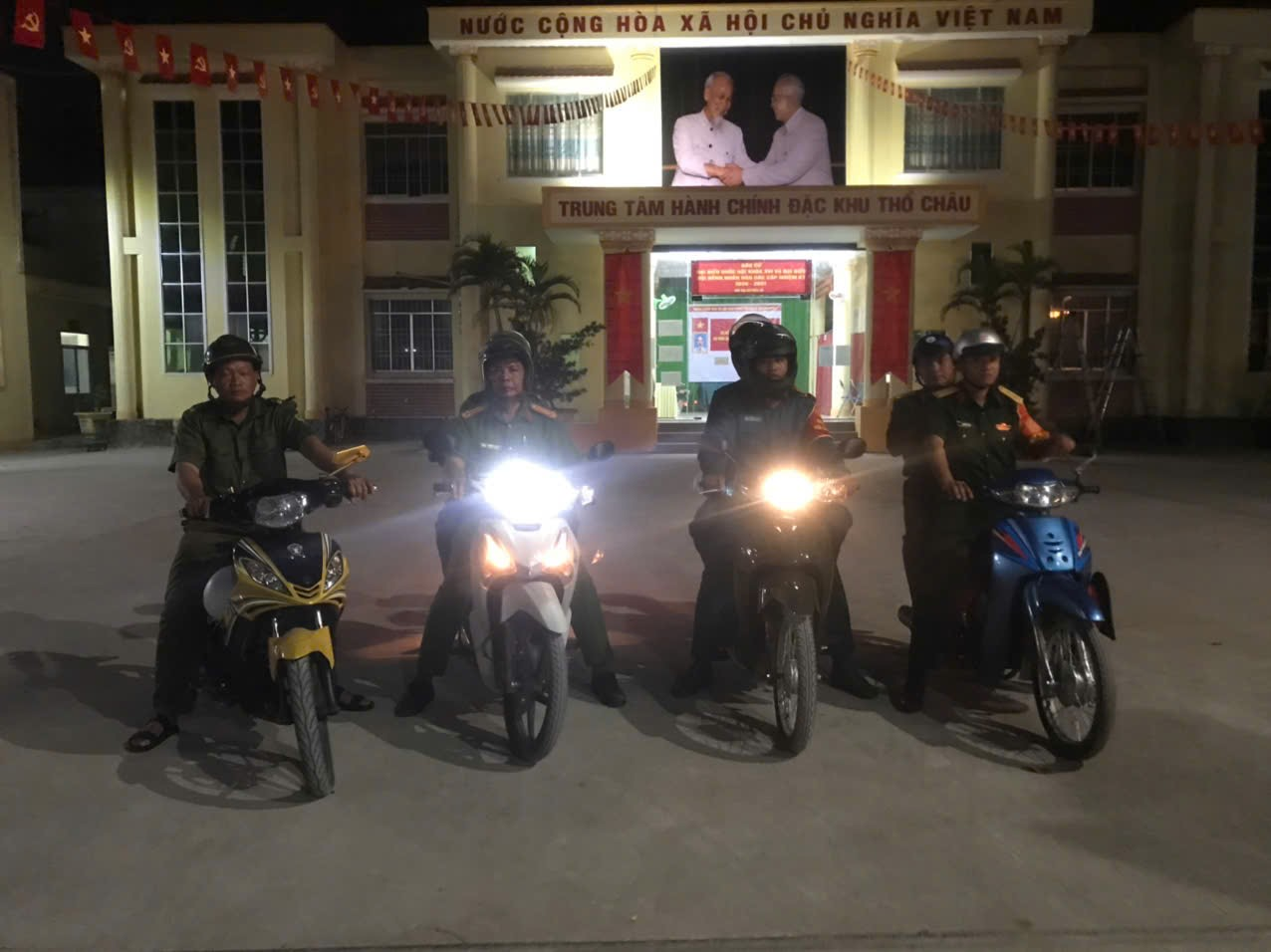 Lực lượng Công an - Quân sự - Biên phòng Thổ Châu phối hợp tuần tra đảm bảo an ninh, trật tự trên địa bàn trước Ngày bầu cử
