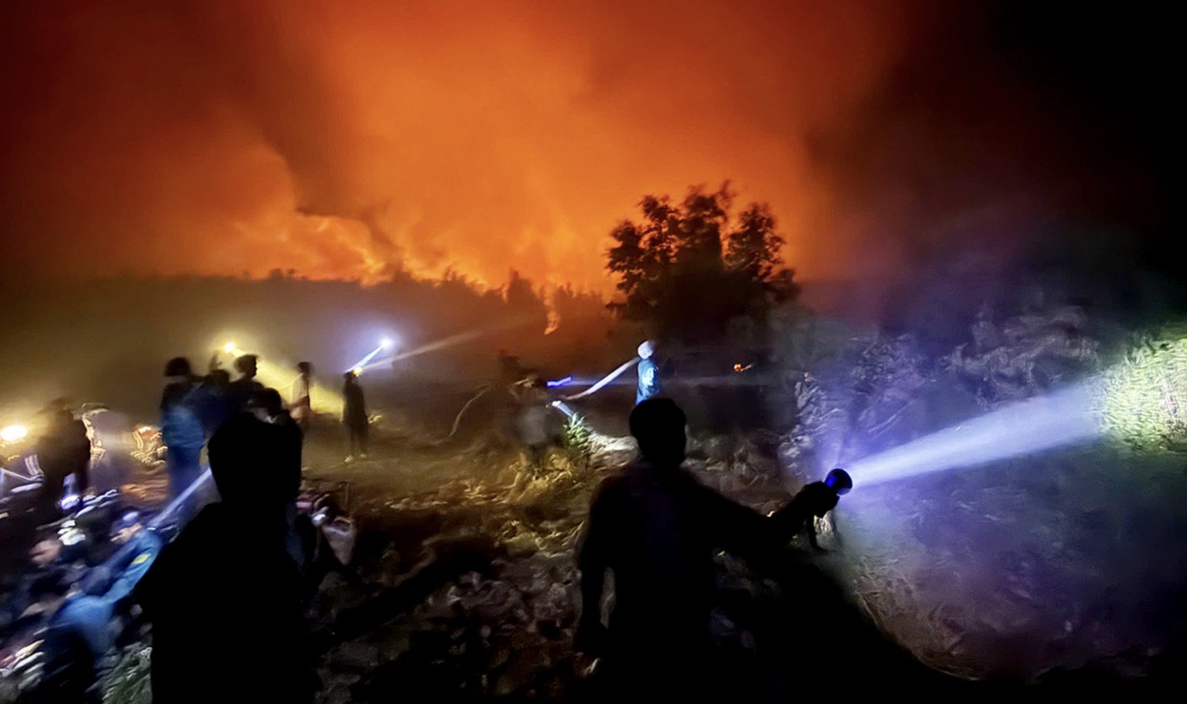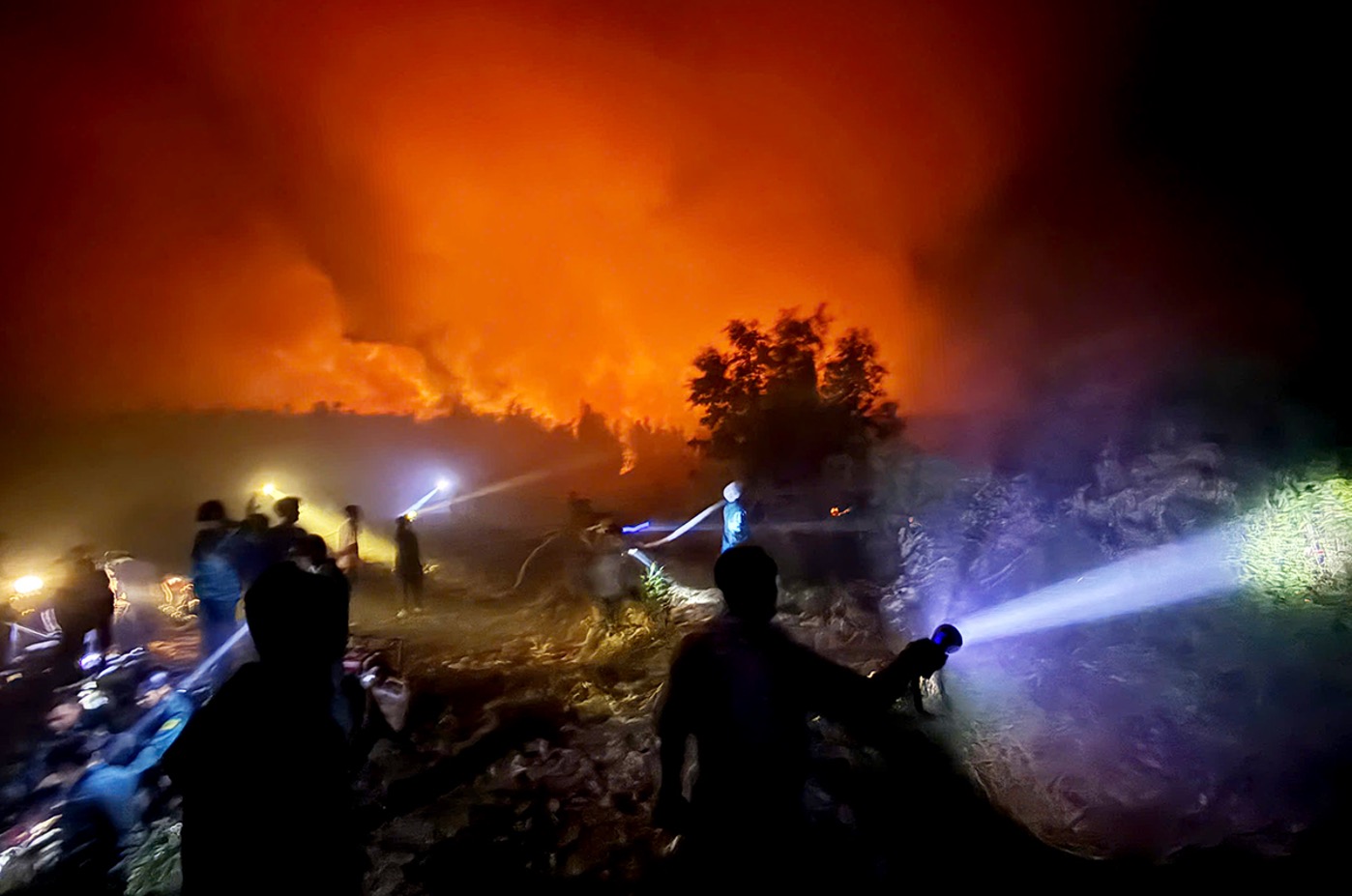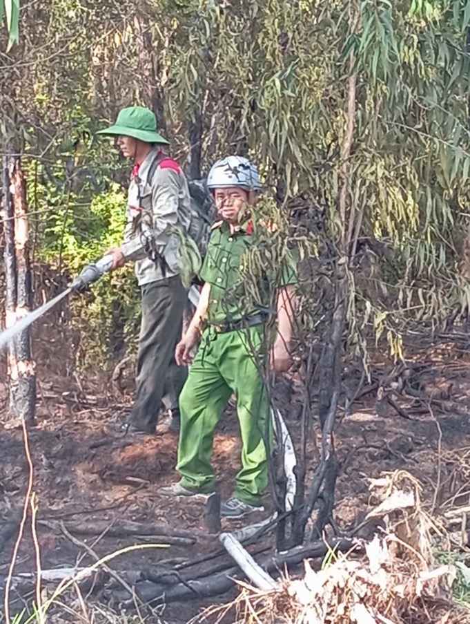 Đồng thời huy động 40 cán bộ, chiến sĩ Công an xã và hơn 100 người tham gia thuộc lực lượng Quân sự, cán bộ UBND xã, cùng sự hỗ trợ kịp thời từ Chi cục Kiểm lâm, Hạt Kiểm lâm khu vực I và Ban quản lý rừng An Giang đến hiện trường phối hợp với người dân và các chủ hộ rừng xung quanh khống chế đám cháy trong đêm.