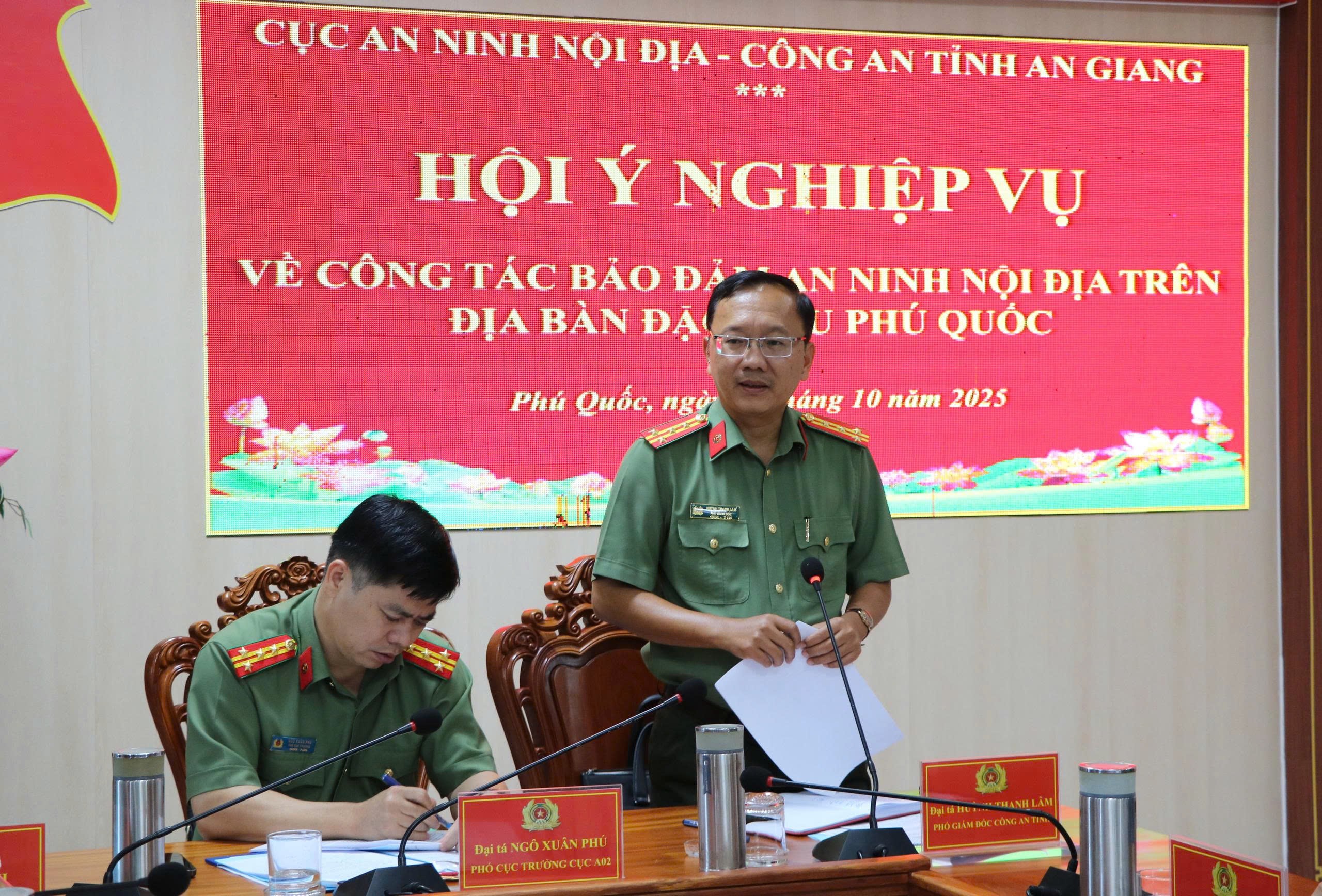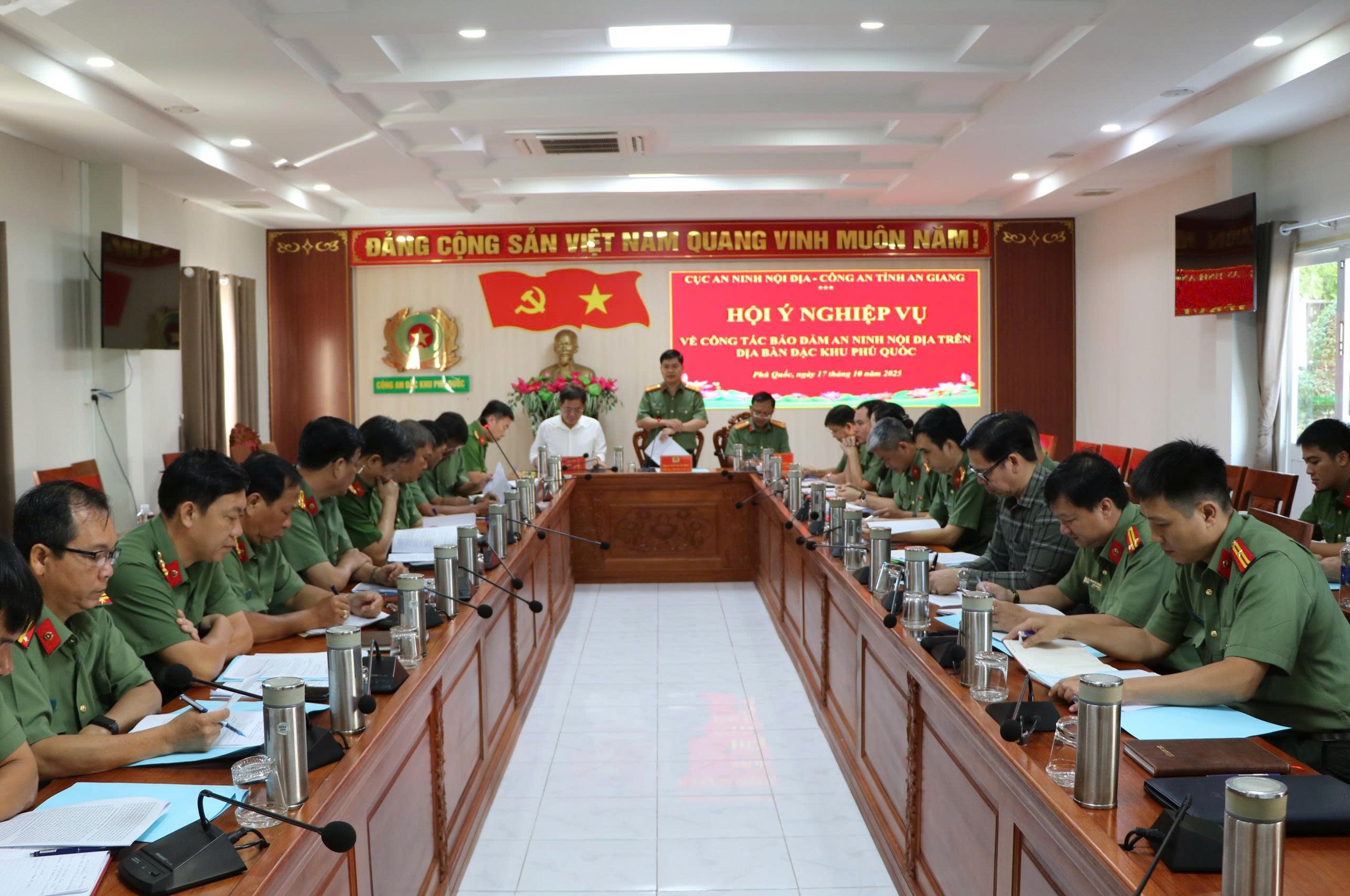 Phát biểu tại buổi hội ý, Đại tá Huỳnh Thanh Lâm, Phó Giám đốc Công an tỉnh An Giang cảm ơn sự quan tâm, hướng dẫn nghiệp vụ sâu sát của Cục An ninh nội địa. Đồng thời khẳng định, Công an tỉnh luôn xác định Phú Quốc là địa bàn chiến lược về phát triển kinh tế – xã hội và quốc phòng – an ninh; thời gian tới, Công an tỉnh sẽ tiếp tục chỉ đạo các đơn vị nghiệp vụ, đặc biệt là Công an đặc khu Phú Quốc, chủ động nắm chắc tình hình, tăng cường phối hợp đồng bộ giữa các lực lượng, kịp thời phát hiện, ngăn chặn và xử lý các vấn đề nổi lên, giữ vững ổn định an ninh trên địa bàn.