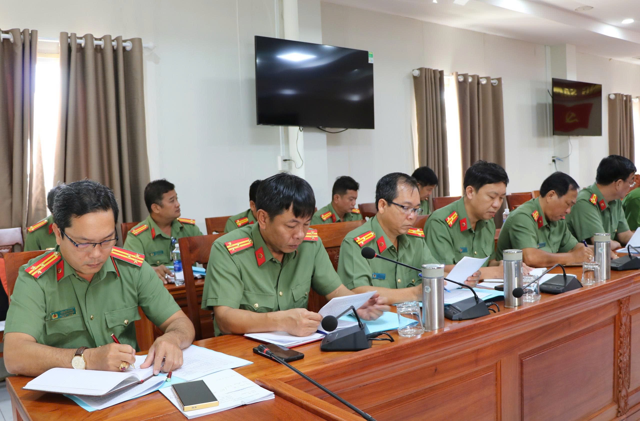 Đồng chí Đại tá Huỳnh Thanh Lâm, Phó Giám đốc Công an tỉnh phát biểu tại buổi hội ý nghiệp vụ