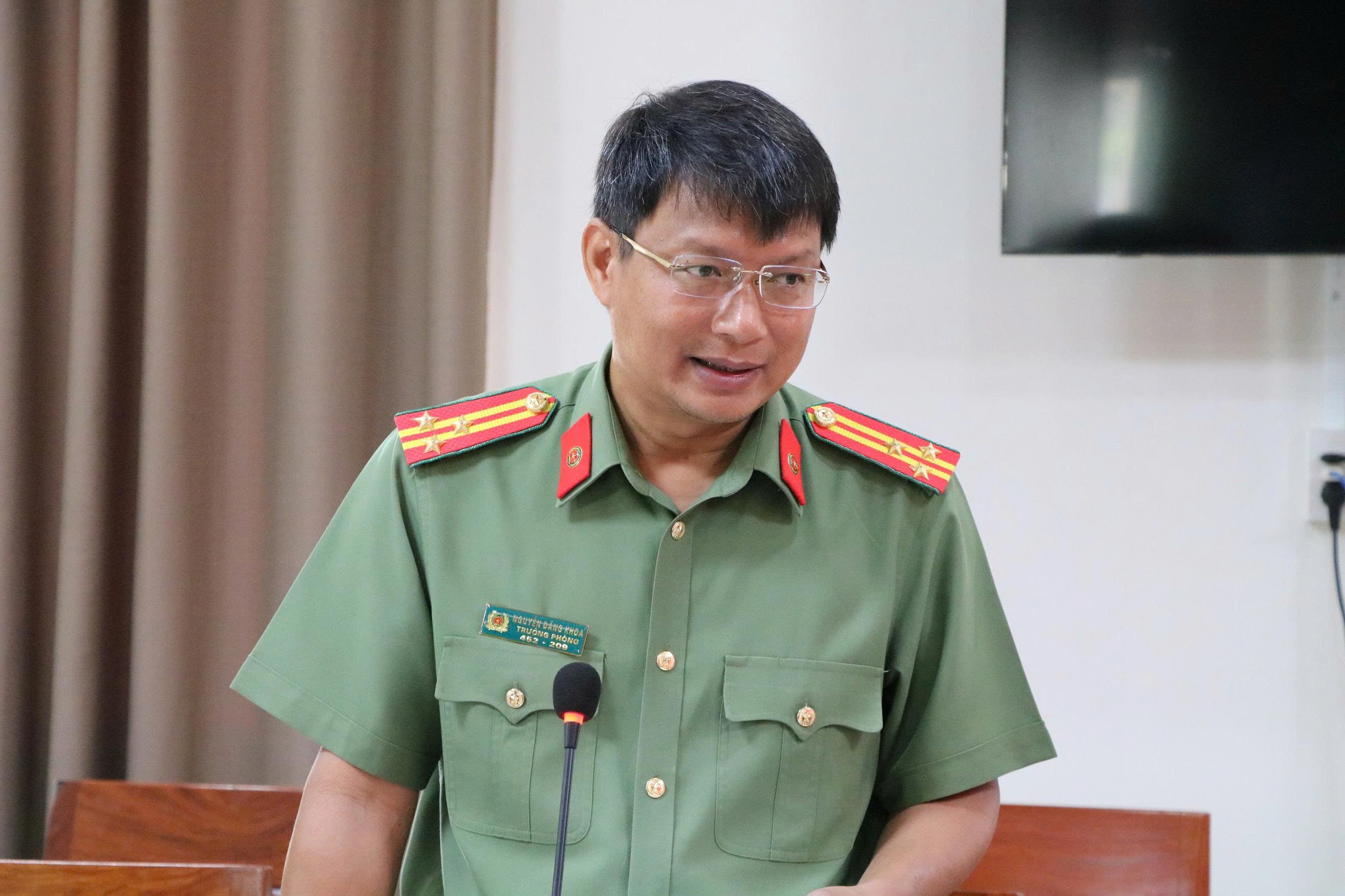 Đồng chí Thượng tá Nguyễn Đăng Khoa, Trưởng phòng an ninh nội địa, Công an tỉnh An Giang phát biểu tại buổi hội ý nghiệp vụ