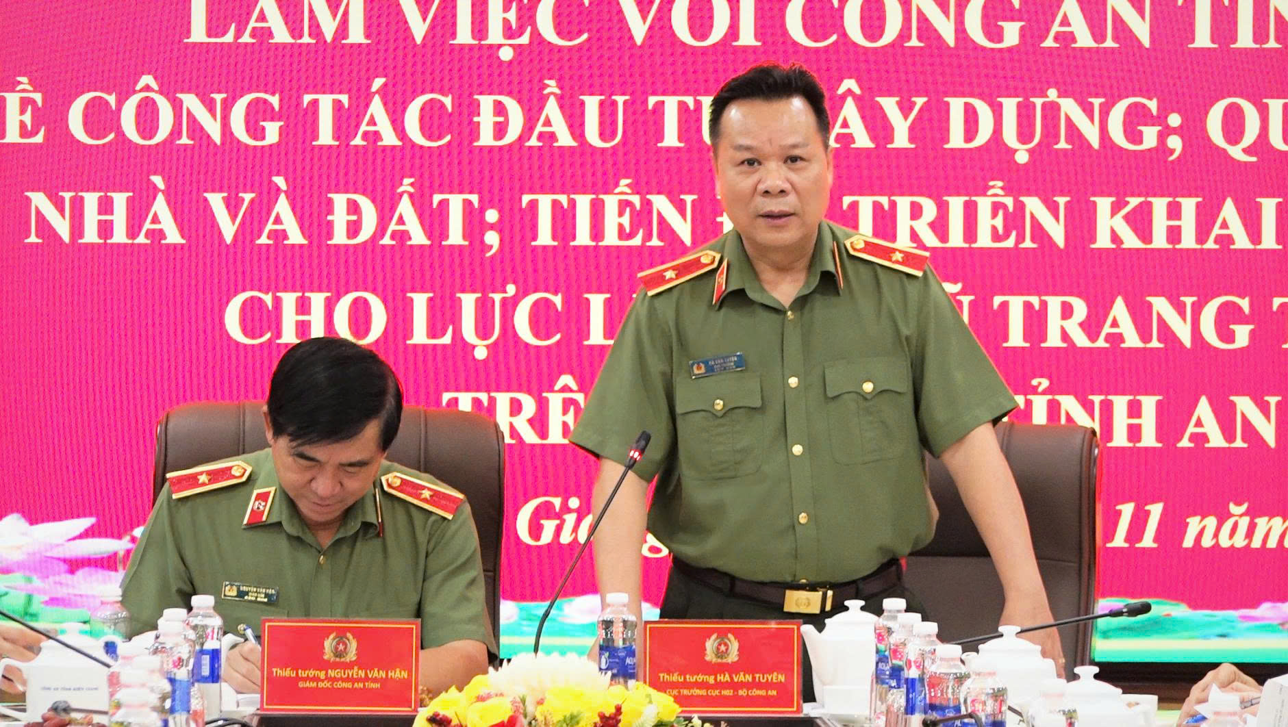 Ngày 08/11/2025, Đoàn công tác của Cục Quản lý xây dựng và doanh trại (Bộ Công an) do Thiếu tướng Hà Văn Tuyên, Cục trưởng, làm Trưởng đoàn đã có buổi làm việc với Công an tỉnh An Giang nhằm kiểm tra công tác đầu tư xây dựng; quản lý doanh trại, nhà và đất; tiến độ triển khai các dự án nhà ở cho lực lượng vũ trang trong CAND trên địa bàn tỉnh. Tiếp và làm việc với đoàn có Thiếu tướng Nguyễn Văn Hận, Ủy viên BTV Tỉnh ủy, Giám đốc Công an tỉnh; lãnh đạo và chỉ huy phòng Hậu Cần, phòng Tham mưu, Công an tỉnh; đại diện Sở Xây dựng và Tập đoàn Phú Cường Hoàng Gia.