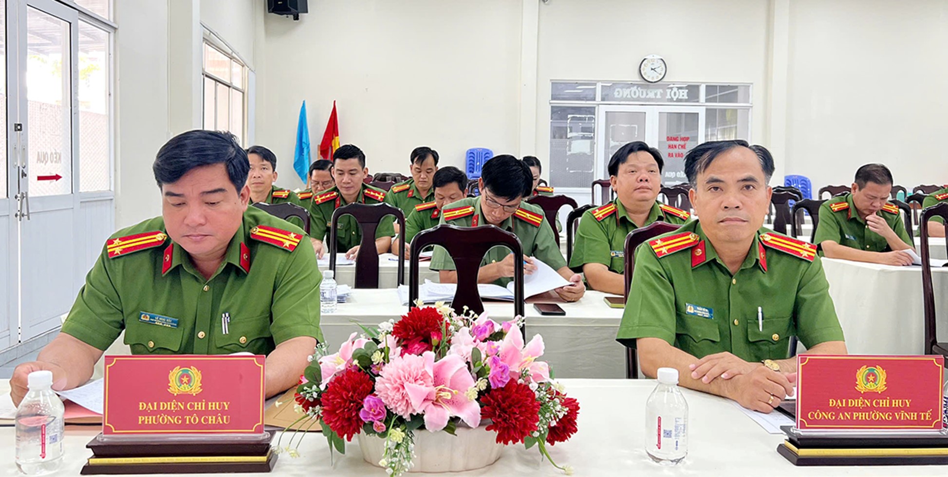 Cụm thi đua số 2 Công an tỉnh gồm Công an các phường: Vĩnh Tế, Tô Châu, Vĩnh Thông, Bình Đức, Mỹ Thới, Long Phú, Chi Lăng và Thới Sơn. Tại hội nghị, Công an phường Vĩnh Tế, Cụm trưởng Cụm thi đua số 2 đã thông qua Kế hoạch phát động phong trào thi đua “Vì an ninh Tổ quốc” năm 2026 với nhiều chỉ tiêu, nhiệm vụ cụ thể. Trọng tâm là tiếp tục nâng cao hiệu quả công tác nắm tình hình, chủ động phòng ngừa, đấu tranh với các loại tội phạm, tăng cường quản lý nhà nước về an ninh, trật tự, đẩy mạnh cải cách hành chính, ứng dụng công nghệ thông tin trong công tác công an, xây dựng lực lượng trong sạch, vững mạnh, đáp ứng yêu cầu nhiệm vụ trong tình hình mới. Đồng thời thông qua quy chế làm việc của Cụm thi đua số 2, quy định tiêu chí, thang điểm thực hiện phong trào thi đua “Vì an ninh Tổ quốc” năm 2026.