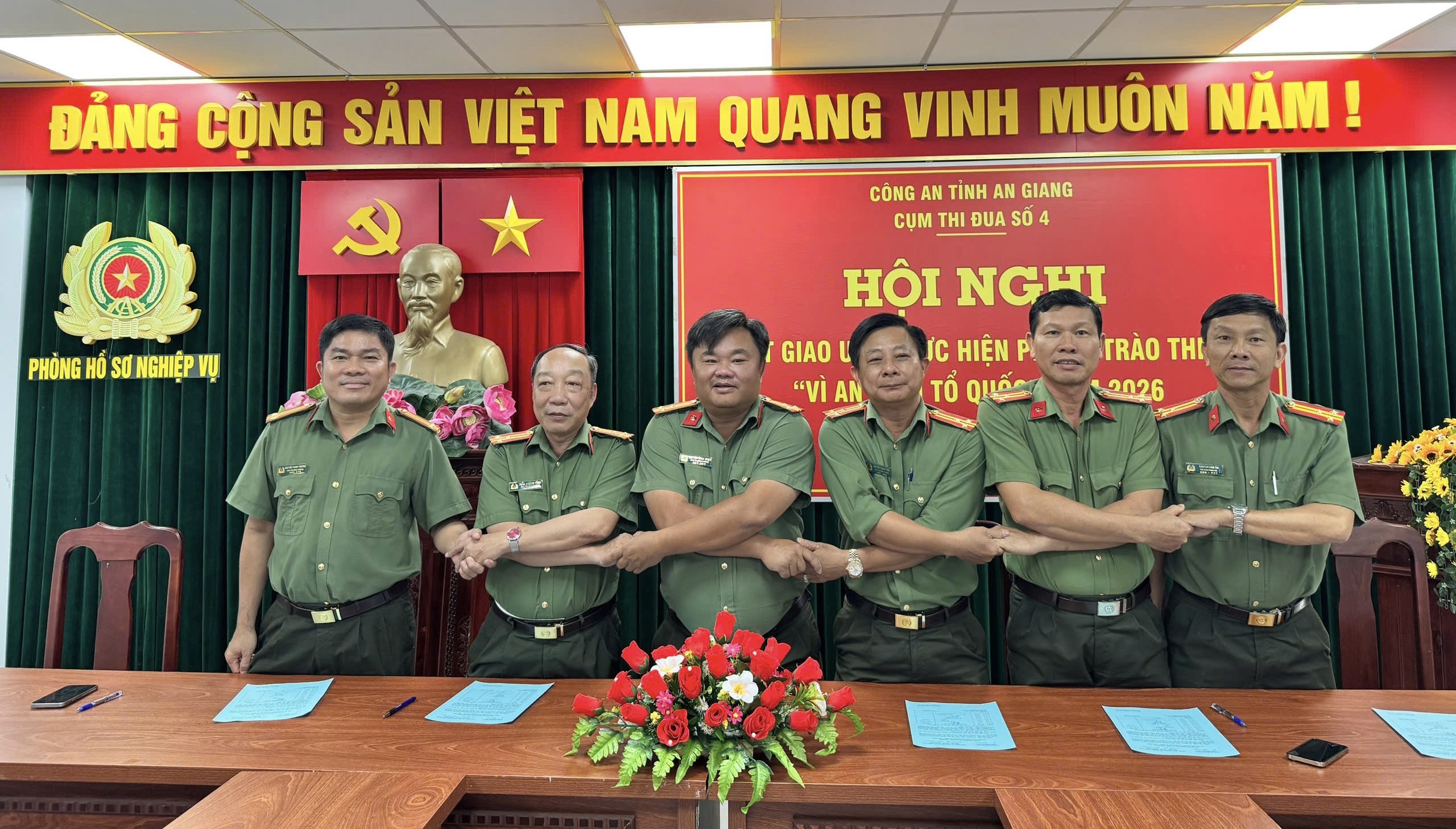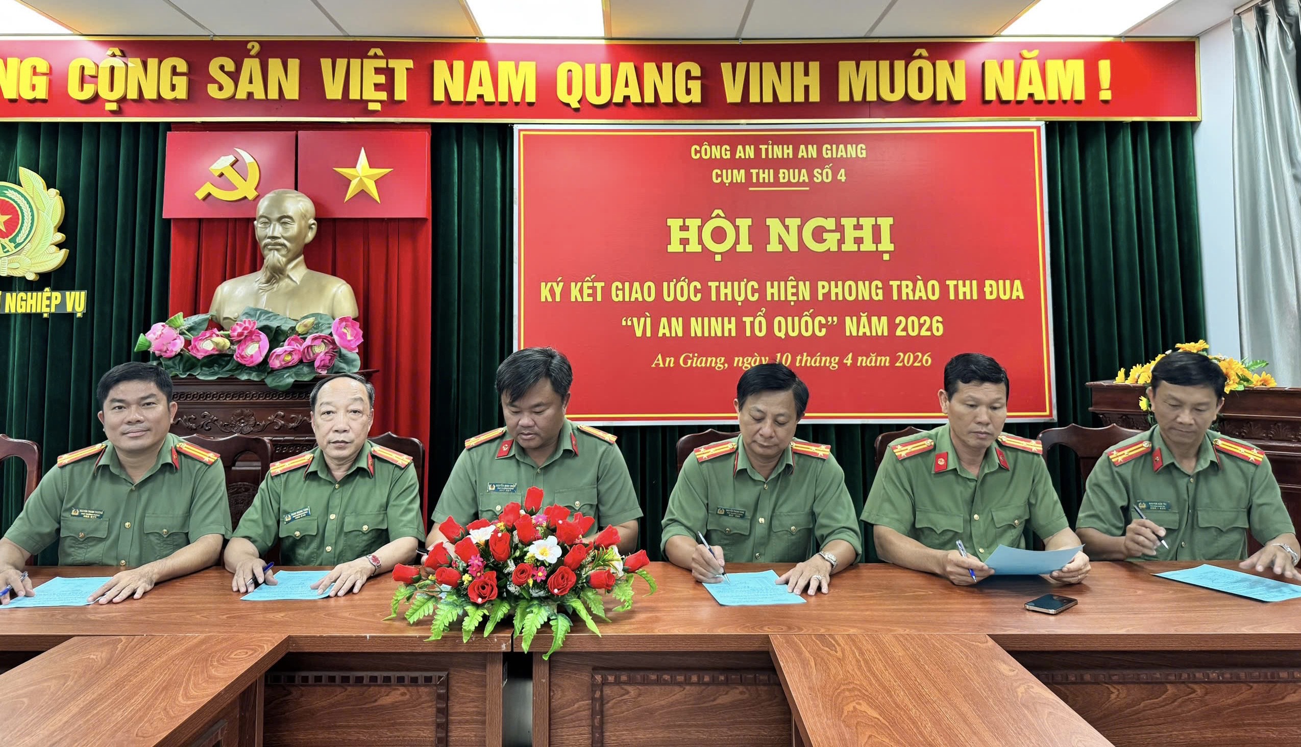 Thiết thực hưởng ứng phong trào thi đua “Vì an ninh Tổ quốc”, quyết tâm thực hiện thắng lợi mục tiêu, nhiệm vụ công tác Công an năm 2026 với khẩu hiệu hành động “Theo lời Bác dạy – Đổi mới tư duy, nâng cao tri thức – Chính quy, hiện đại – Vì Đảng, vì dân”, gắn với phong trào thi đua “Ba nhất” trong Công an nhân dân, Cụm thi đua số 4 đã tổ chức Hội nghị ký kết giao ước thi đua năm 2026.