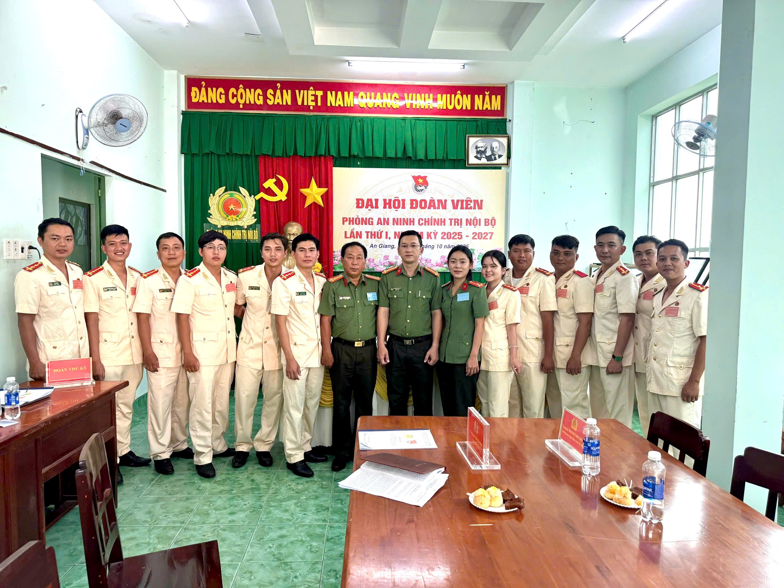 Vừa qua, Chi đoàn phòng An ninh chính trị nội bộ tổ chức Đại hội đoàn viên lần thứ I, nhiệm kỳ 2025-2027. Tham dự có Thượng tá Trần Văn Bình, Đảng ủy viên, Phó Trưởng phòng An ninh chính trị nội bộ; Trung tá Trương Văn Quốc, Ủy viên Ban Thường vụ Tỉnh đoàn, Trưởng Ban Thanh niên Công an tỉnh; cùng toàn thể đoàn viên trong Chi đoàn.