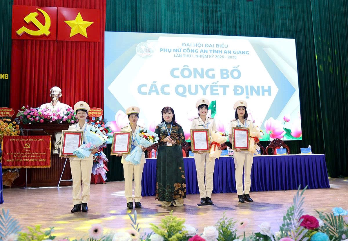 Đại hội đã công bố Quyết định của Ban Thường vụ Hội Liên hiệp Phụ nữ tỉnh An Giang về chỉ định Ủy viên Ban Phụ nữ Công an tỉnh khóa I, nhiệm kỳ 2025 – 2030, gồm: 17 đồng chí (01 Trưởng ban và 03 Phó ban); Ủy ban Kiểm tra, gồm: 05 đồng chí. Đồng chí Trung tá Nguyễn Thị Thu Cúc được chỉ định giữ chức Trưởng ban Phụ nữ Công an tỉnh, nhiệm kỳ 2025 - 2030. Đồng thời, chỉ định Đoàn đại biểu dự Đại hội đại biểu Phụ nữ tỉnh An Giang lần thứ I.