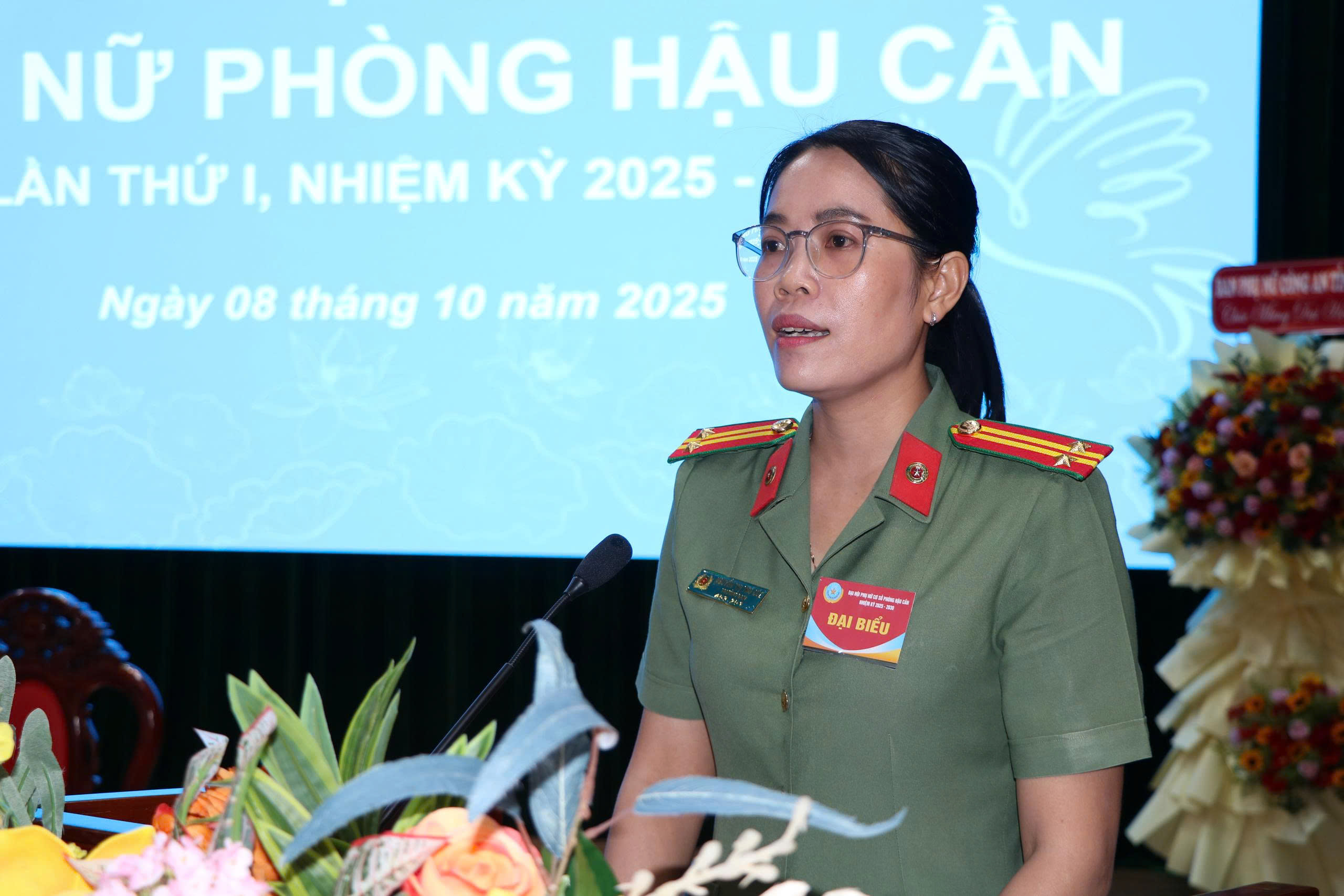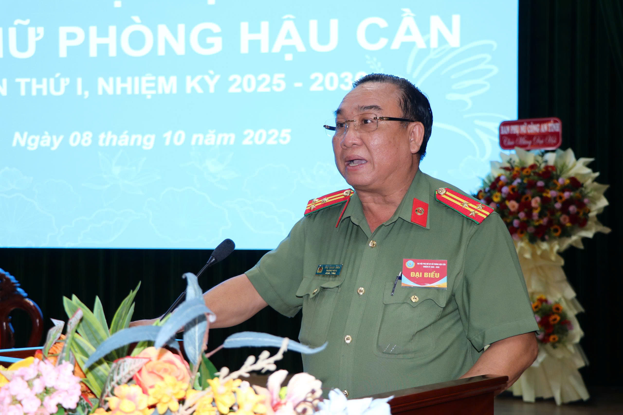 Phát biểu tại Đại hội, đồng chí Thượng tá Ngô Thanh Khoa, Bí thư Đảng uỷ, Trưởng phòng Hậu cần ghi nhận và biểu dương những đóng góp nổi bật của hội viên phụ nữ phòng Hậu cần, nhấn mạnh vai trò nòng cốt của Hội trong phong trào thi đua và xây dựng hình ảnh người phụ nữ Công an “Bản lĩnh, trí tuệ, nhân văn, kỷ cương, trách nhiệm”.