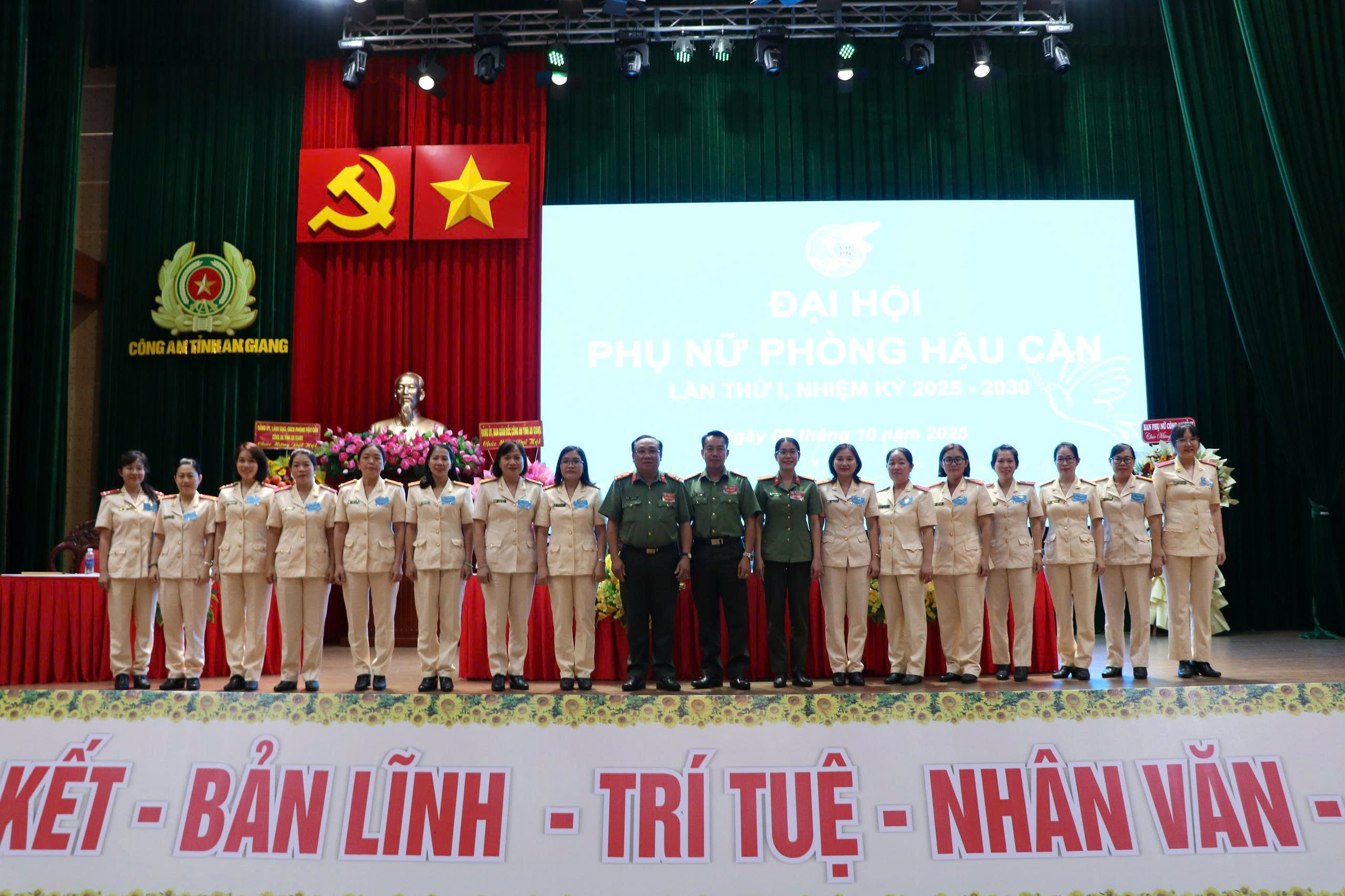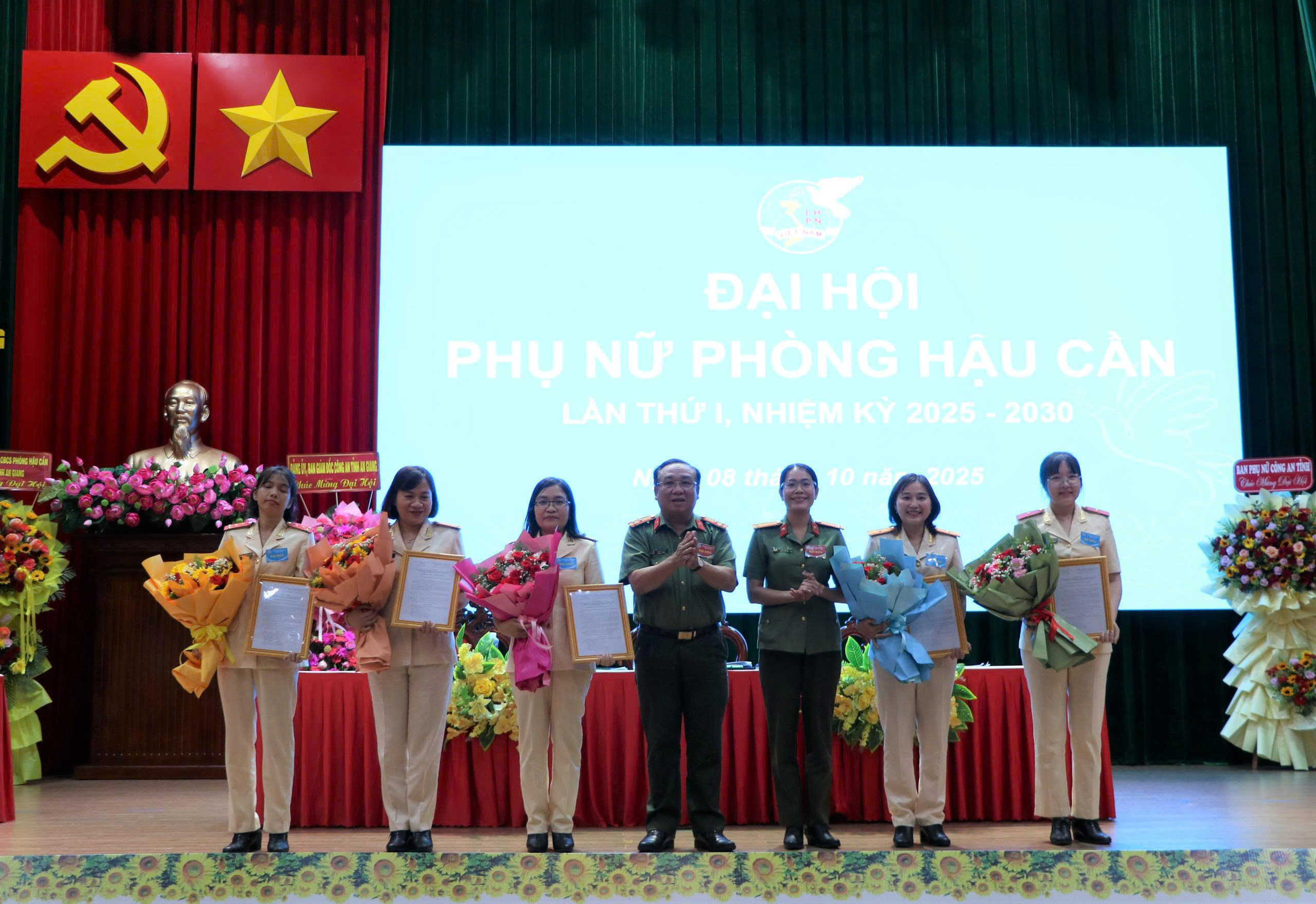 trao các quyết định và tặng hoa chúc mừng Ban Chấp hành Hội Phụ nữ cơ sở Phòng Hậu cần Công an tỉnh An Giang lần thứ I, nhiệm kỳ 2025 -2030