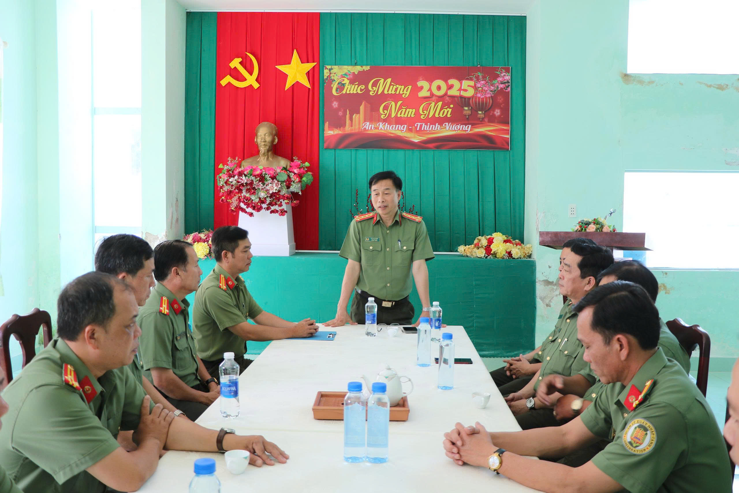 Thay mặt Đảng ủy, Ban Giám đốc Công an tỉnh, Đại tá Đào Hải Đăng, gửi lời chúc mừng năm mới đến cán bộ, chiến sĩ