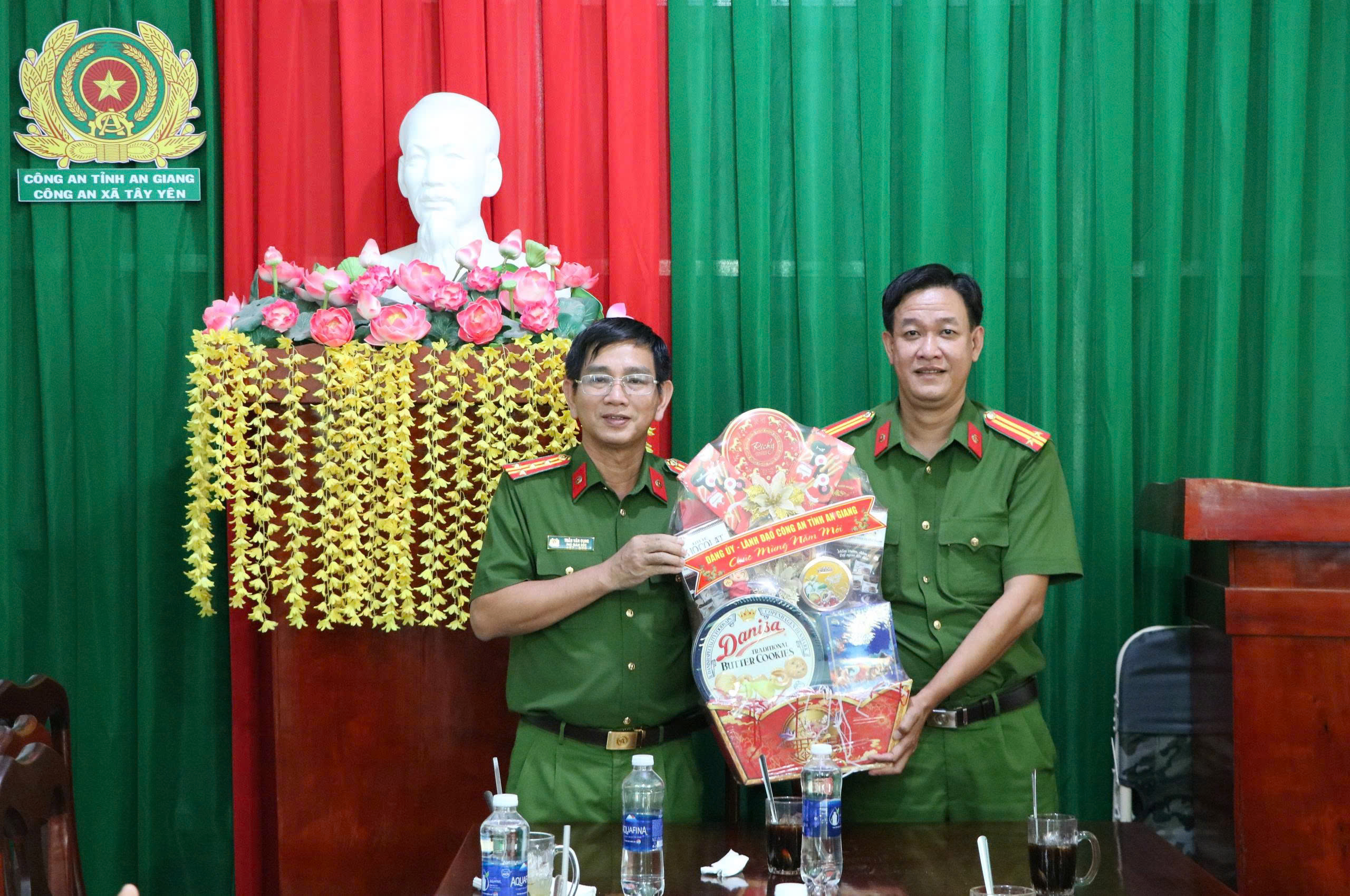Nhân dịp Tết Nguyên đán Bính Ngọ năm 2026, với tinh thần sẻ chia, động viên lực lượng trực tiếp bám địa bàn cơ sở, Đoàn công tác của Công an tỉnh An Giang do đồng chí Đại tá Trần Văn Cung - Phó Giám đốc Công an tỉnh làm Trưởng đoàn đã đến thăm, chúc Tết và trao quà cho cán bộ, chiến sĩ Công an xã Đông Thái và Công an xã Tây Yên.