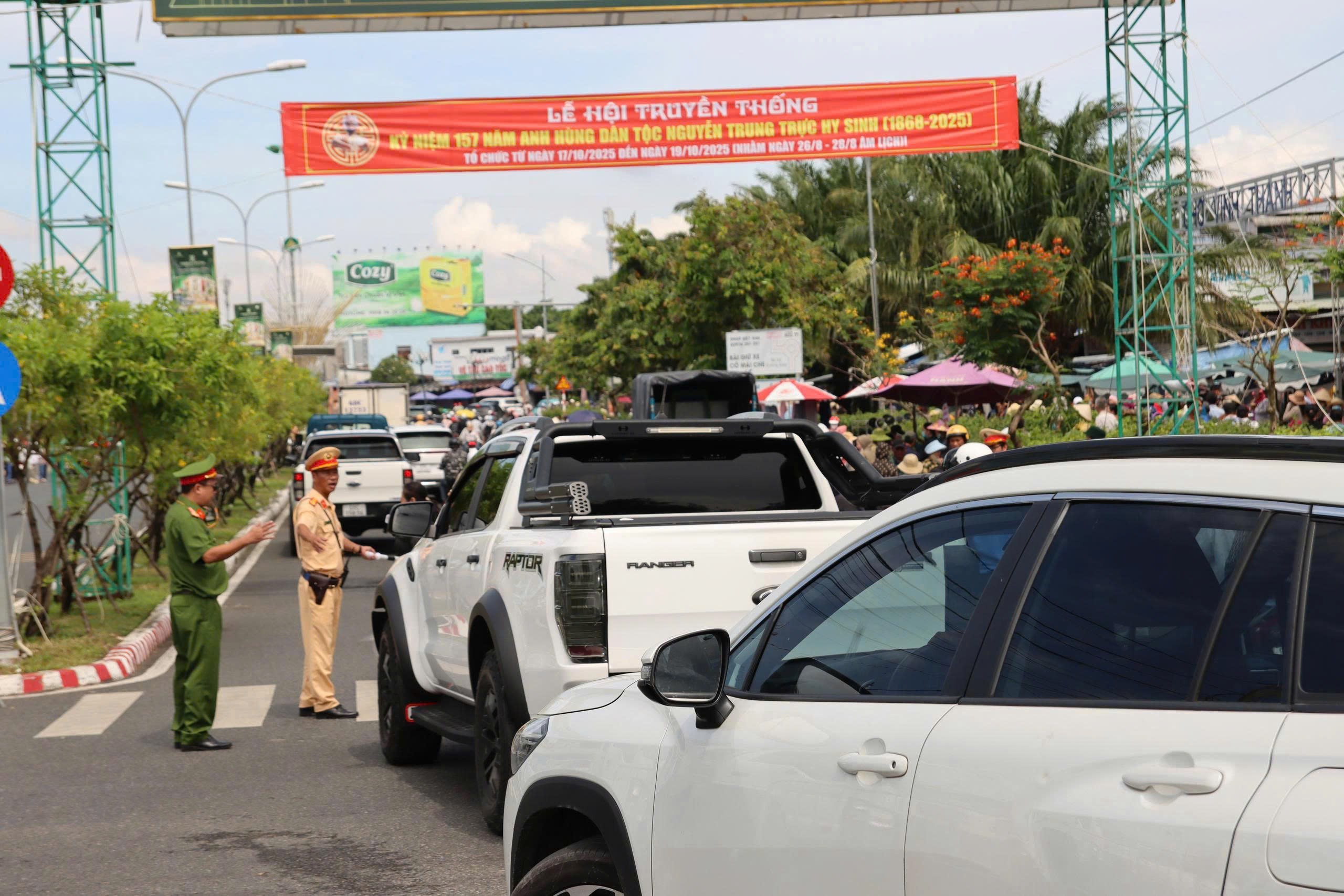Lực lượng Công an phân luồng giao thông, tổ chức chốt chặn tại các tuyến đường trọng điểm vào Lễ hội