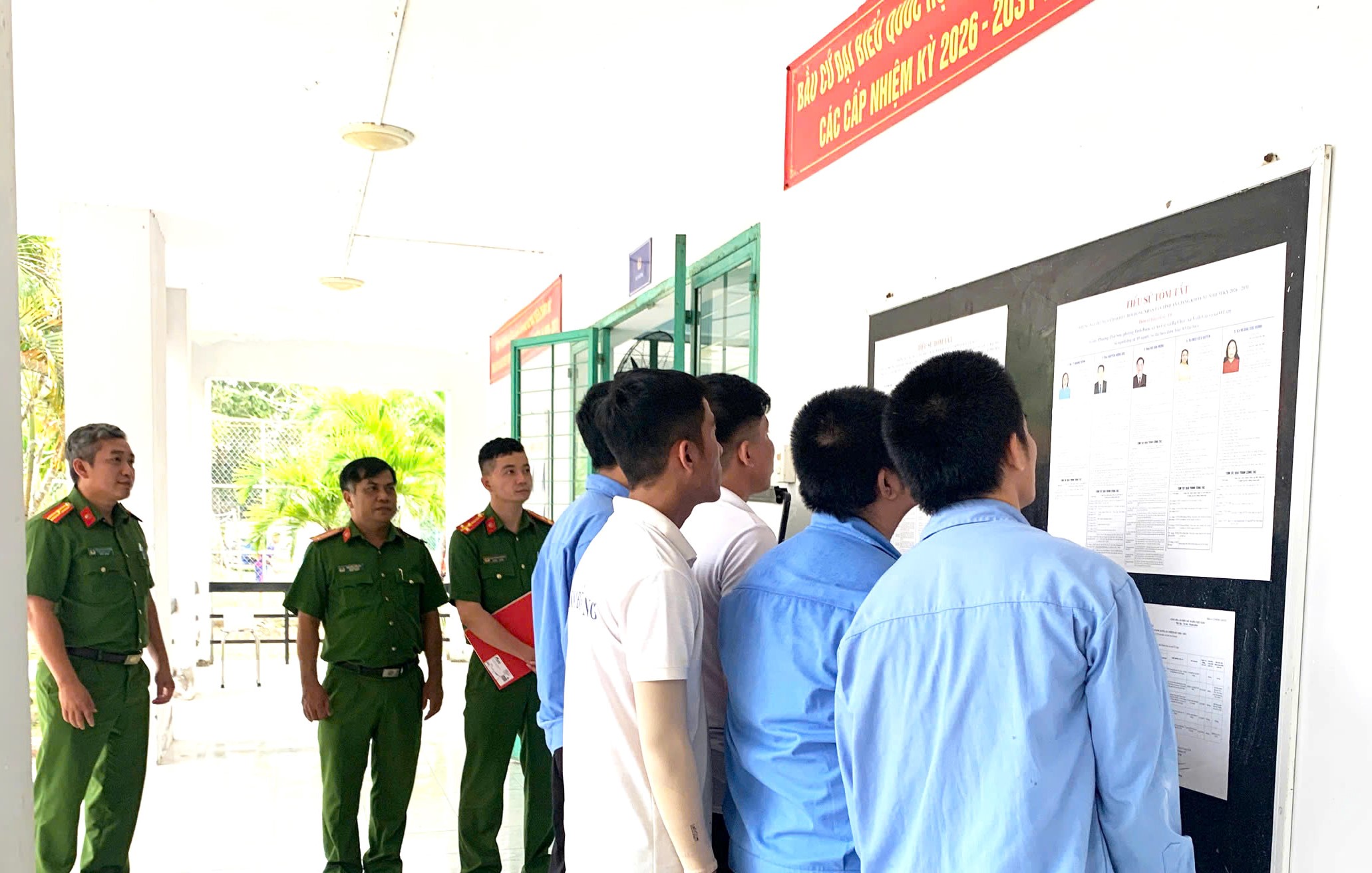 Tại các khu vực sinh hoạt chung và dãy nhà lưu trú của học viên, danh sách cử tri cùng tiểu sử tóm tắt của các ứng cử viên được niêm yết trang trọng, thuận tiện cho việc theo dõi. Công tác rà soát thông tin cá nhân, đối chiếu hộ khẩu và giấy tờ tùy thân của từng học viên được thực hiện chặt chẽ, bảo đảm không để sót quyền lợi chính trị của bất kỳ cử tri nào theo quy định của Luật Bầu cử.