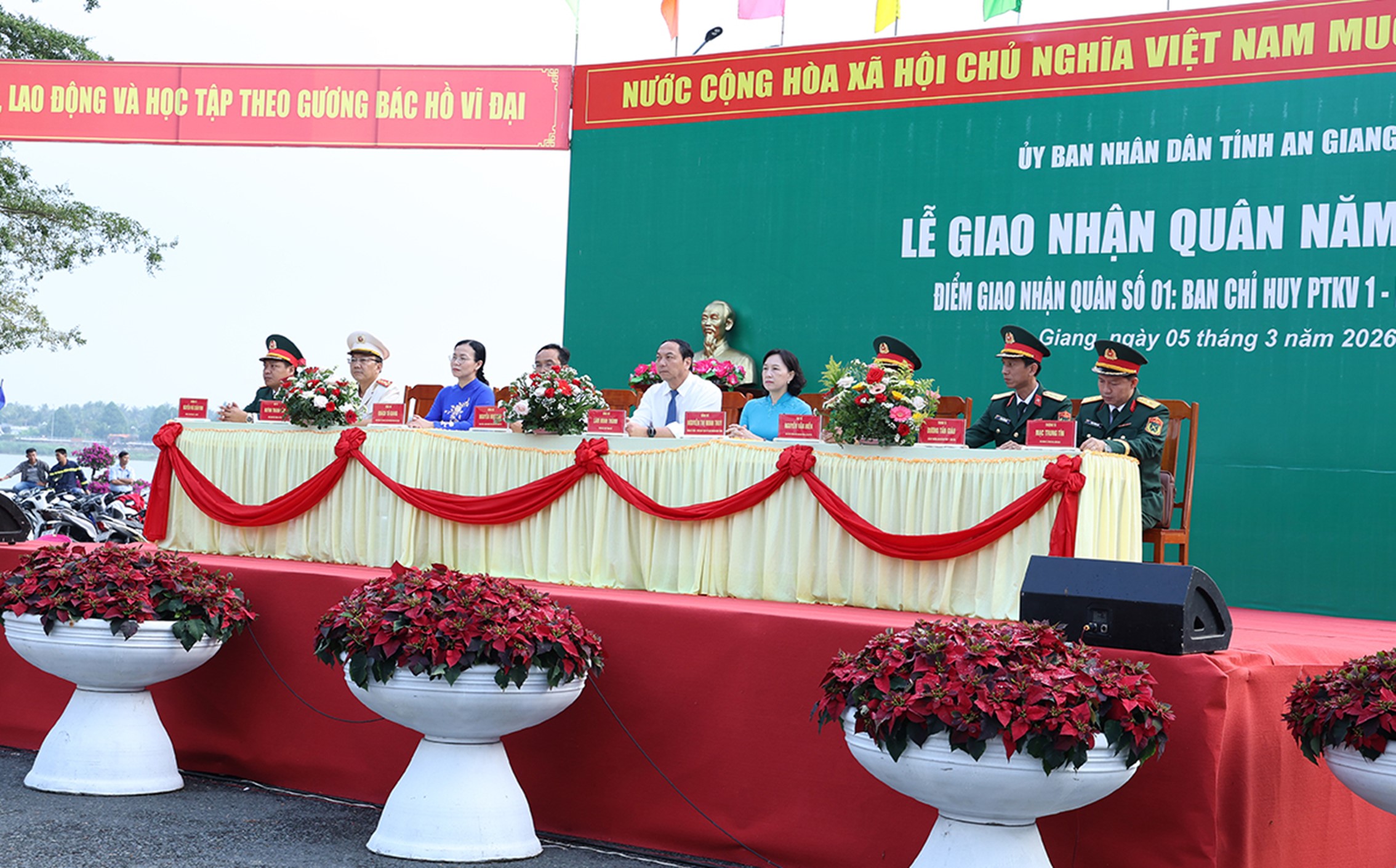Sáng 5/3, tại Quảng trường Tân Châu thuộc phường Long Phú, tỉnh An Giang, UBND tỉnh long trọng tổ chức Lễ giao, nhận quân năm 2026. Tham dự buổi Lễ có đồng chí Lâm Minh Thành, Phó Bí thư Tỉnh ủy; đồng chí Lê Thanh Việt, Phó Chủ tịch Thường trực UBMTTQVN tỉnh; đồng chí Nguyễn Thị Minh Thúy, Phó Chủ tịch UBND tỉnh cùng đại diện lãnh đạo các sở, ban ngành, đoàn thể tỉnh và lãnh đạo các xã, phường. Về phía Công an tỉnh có đồng chí Đại tá Huỳnh Thanh Lâm, Phó Giám đốc Công an tỉnh.