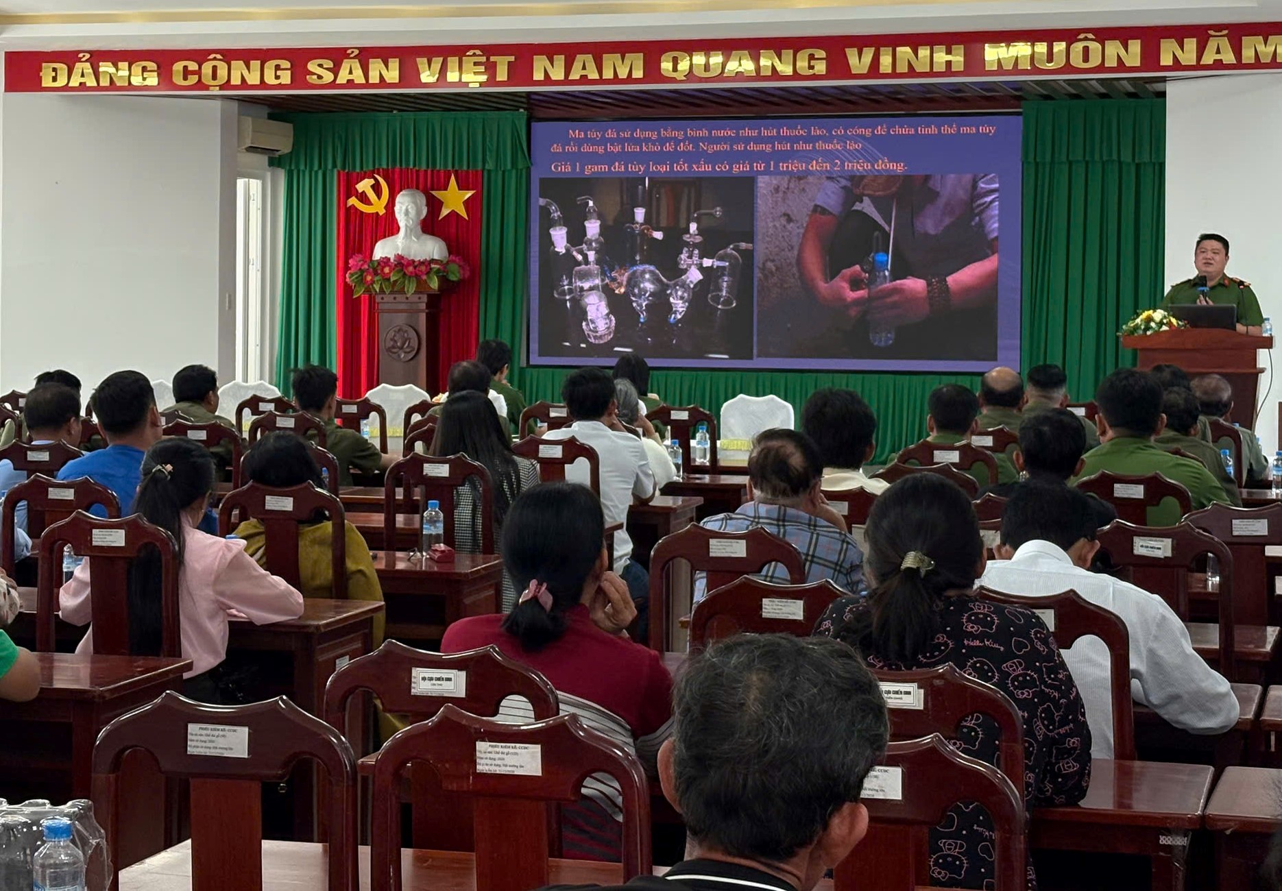 Tại buổi tuyên truyền, đại biểu đã được nghe cán bộ Phòng Cảnh sát điều tra tội phạm về ma túy tập trung tuyên truyền sâu rộng Luật Phòng, chống ma túy năm 2021, các loại ma túy mới, phương thức, thủ đoạn hoạt động ngày càng tinh vi của tội phạm ma túy, những hậu quả, tác hại nghiêm trọng của ma túy đối với sức khỏe, kinh tế, hạnh phúc gia đình và trật tự an toàn xã hội. Người dân được hướng dẫn kỹ năng nhận biết, phòng tránh, tự bảo vệ trước nguy cơ bị lôi kéo, dụ dỗ sử dụng ma túy; đồng thời vận động tích cực tham gia phát hiện, tố giác tội phạm, quản lý người nghiện tại cộng đồng, chung tay xây dựng địa bàn “không ma túy”. Qua đó, nâng cao kiến thức, nhận thức pháp luật và tinh thần cảnh giác trước hiểm họa ma túy cho mỗi người dân và trách nhiệm của từng cá nhân, gia đình trong công tác phòng, chống tệ nạn ma túy.