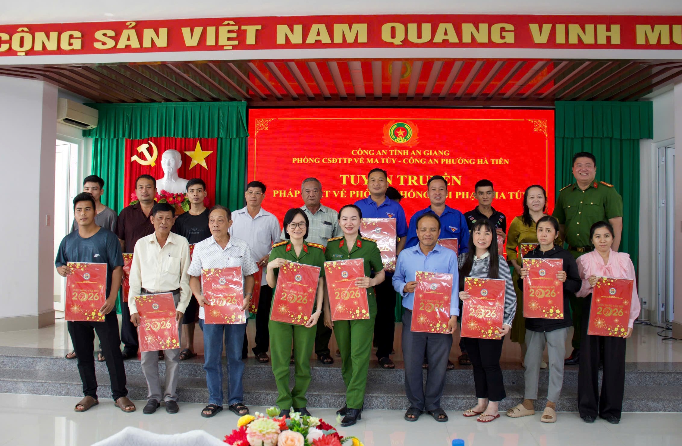 Dịp này, Phòng Cảnh sát điều tra tội phạm về ma túy và Công an phường Hà Tiên đã tặng lịch tuyên truyền phòng, chống ma túy năm 2026 đến các đại biểu, tham dự. Những cuốn lịch không chỉ là vật dụng thiết thực trong sinh hoạt hằng ngày mà còn lồng ghép các thông điệp, khẩu hiệu tuyên truyền về phòng, chống ma túy, góp phần nhắc nhở mỗi cá nhân nâng cao ý thức chấp hành pháp luật, chủ động phòng ngừa, đấu tranh với tội phạm và tệ nạn ma túy./.
