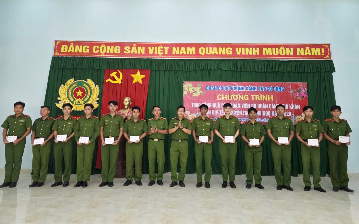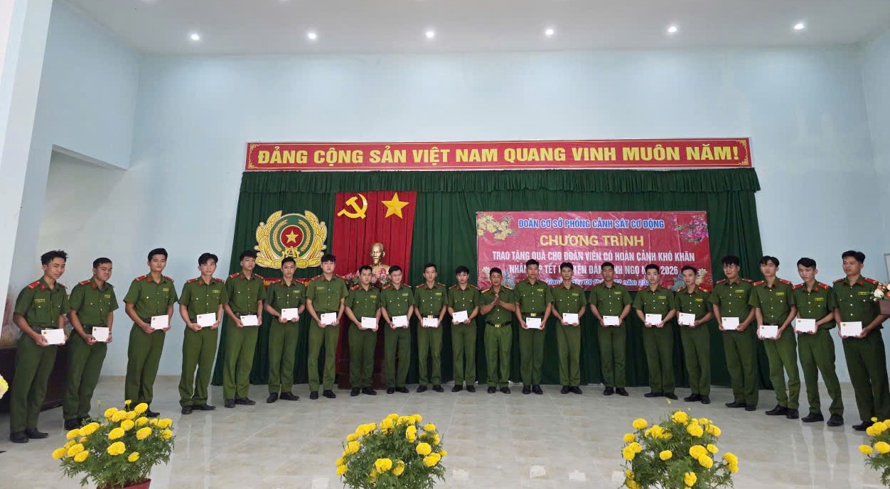 Nhằm chia sẻ, động viên cán bộ chiến sỹ, đoàn viên thanh niên nhân dịp Tết Nguyên đán Bính Ngọ năm 2026, Đoàn cơ sở Phòng Cảnh sát cơ động, Công an tỉnh An Giang đã tổ chức họp mặt, trao quà cho đoàn viên có hoàn cảnh khó khăn.