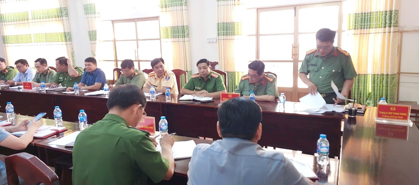 Tham dự buổi làm việc với Đoàn công tác của Công an tỉnh có các đồng chí đại diện cấp uỷ, UBND, UB bầu cử các xã, Tiểu ban An ninh – Y tế, Chỉ huy Công an các xã.