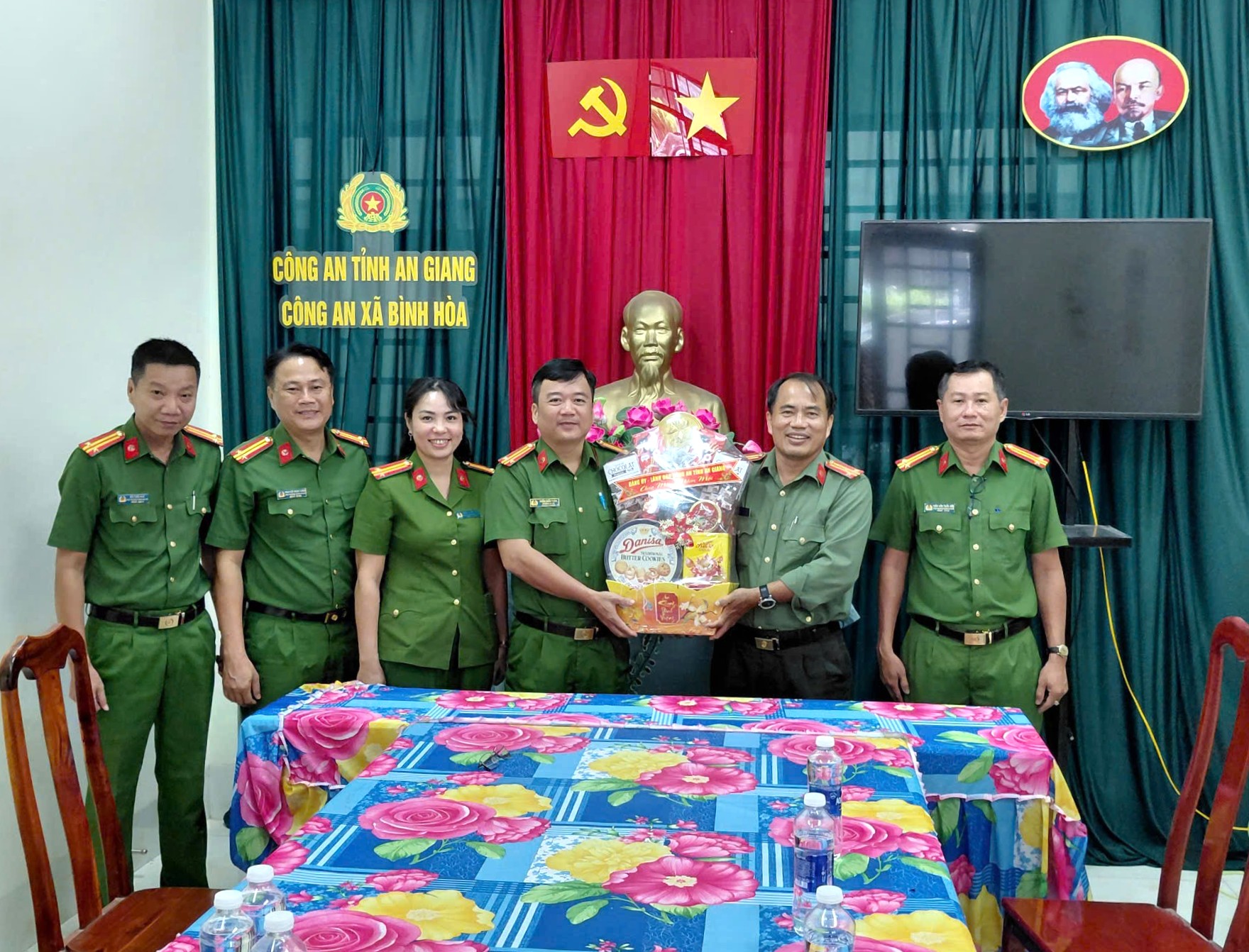 Ngày 05/02/2026 Đoàn công tác của Công an tỉnh An Giang do đồng chí Thượng tá Nguyễn Văn Đủ, Trưởng Phòng Kỹ thuật nghiệp vụ và ngoại tuyến, Tổ trưởng Tổ Phụ trách cụm địa bàn, thừa ủy quyền Giám đốc Công an tỉnh đến thăm hỏi, chúc Tết và tặng quà cho cán bộ, chiến sĩ Công an các xã An Châu, Bình Hòa, Cần Đăng, Vĩnh Hanh, Vĩnh An thuộc tỉnh An Giang.