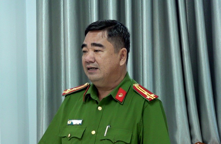 Đại tá Lê Phú Thạnh, Phó Giám đốc Công an tỉnh phát biểu tại buổi làm việc