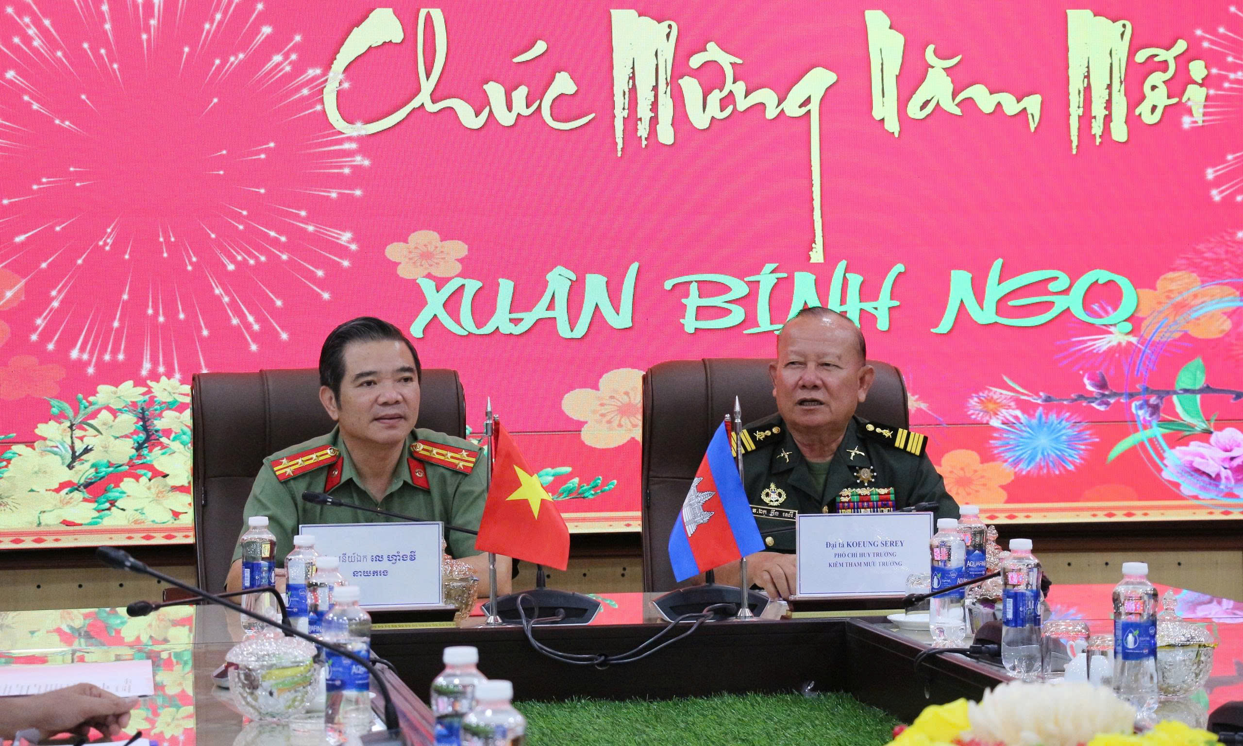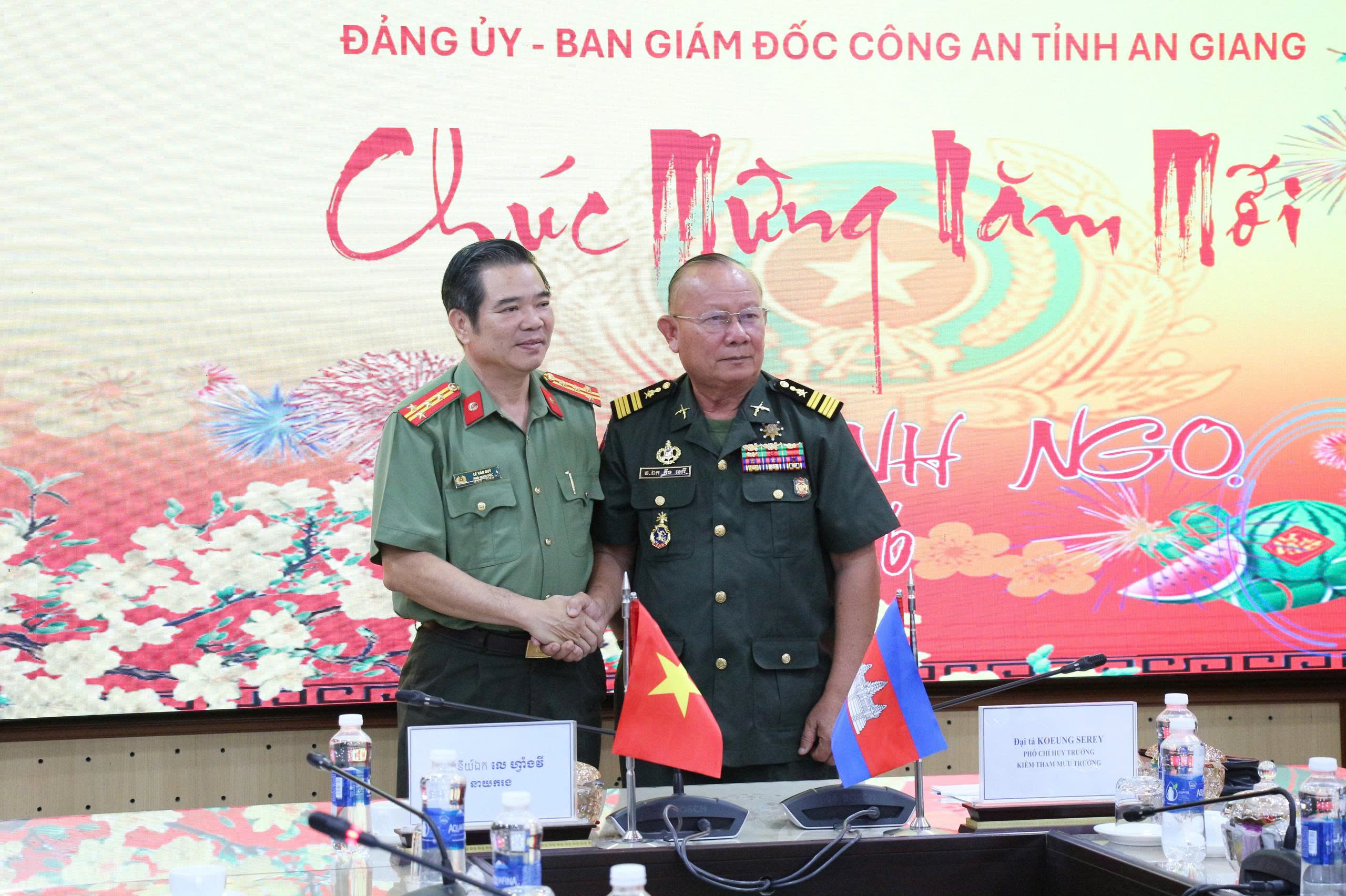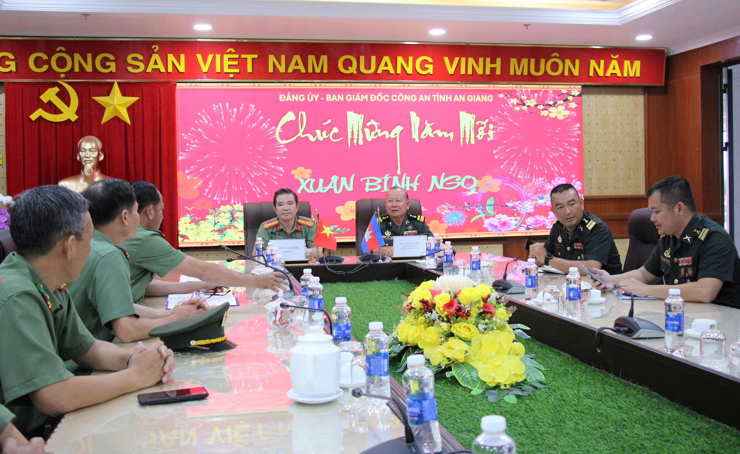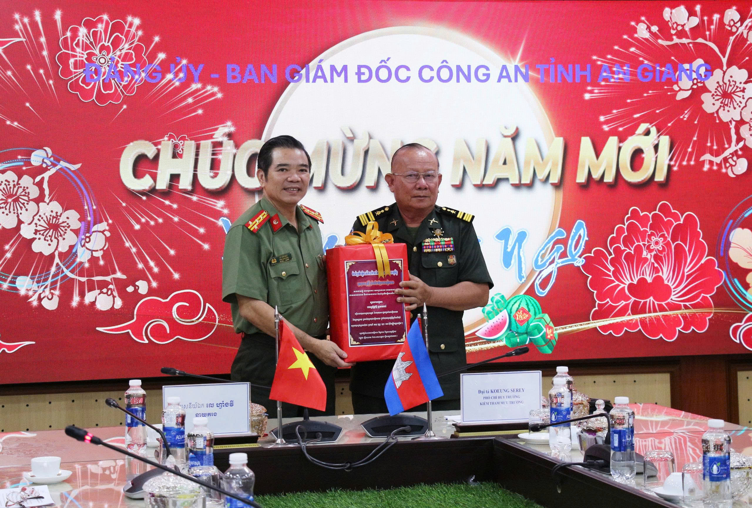 Tại buổi chúc Tết, Đại tá Koeung Serey đã gửi lời chúc mừng năm mới an khang, thịnh vượng đến Ban Giám đốc cùng toàn thể cán bộ, chiến sĩ Công an tỉnh An Giang. Đại tá nhấn mạnh, trong thời gian qua, lực lượng Tiểu khu quân sự KamPot và Công an tỉnh An Giang đã duy trì tốt mối quan hệ đoàn kết, hữu nghị, thường xuyên trao đổi thông tin, phối hợp chặt chẽ trong công tác đảm bảo an ninh trật tự, quản lý, bảo vệ vững chắc tuyến biên giới, góp phần giữ gìn môi trường hòa bình, ổn định để phát triển kinh tế - xã hội của mỗi địa phương. Đồng chí bày tỏ mong muốn thời gian tới 02 bên tiếp tục tăng cường hợp tác, trao đổi kinh nghiệm, xây dựng đường biên giới hòa bình, hữu nghị, hợp tác và phát triển bền vững.