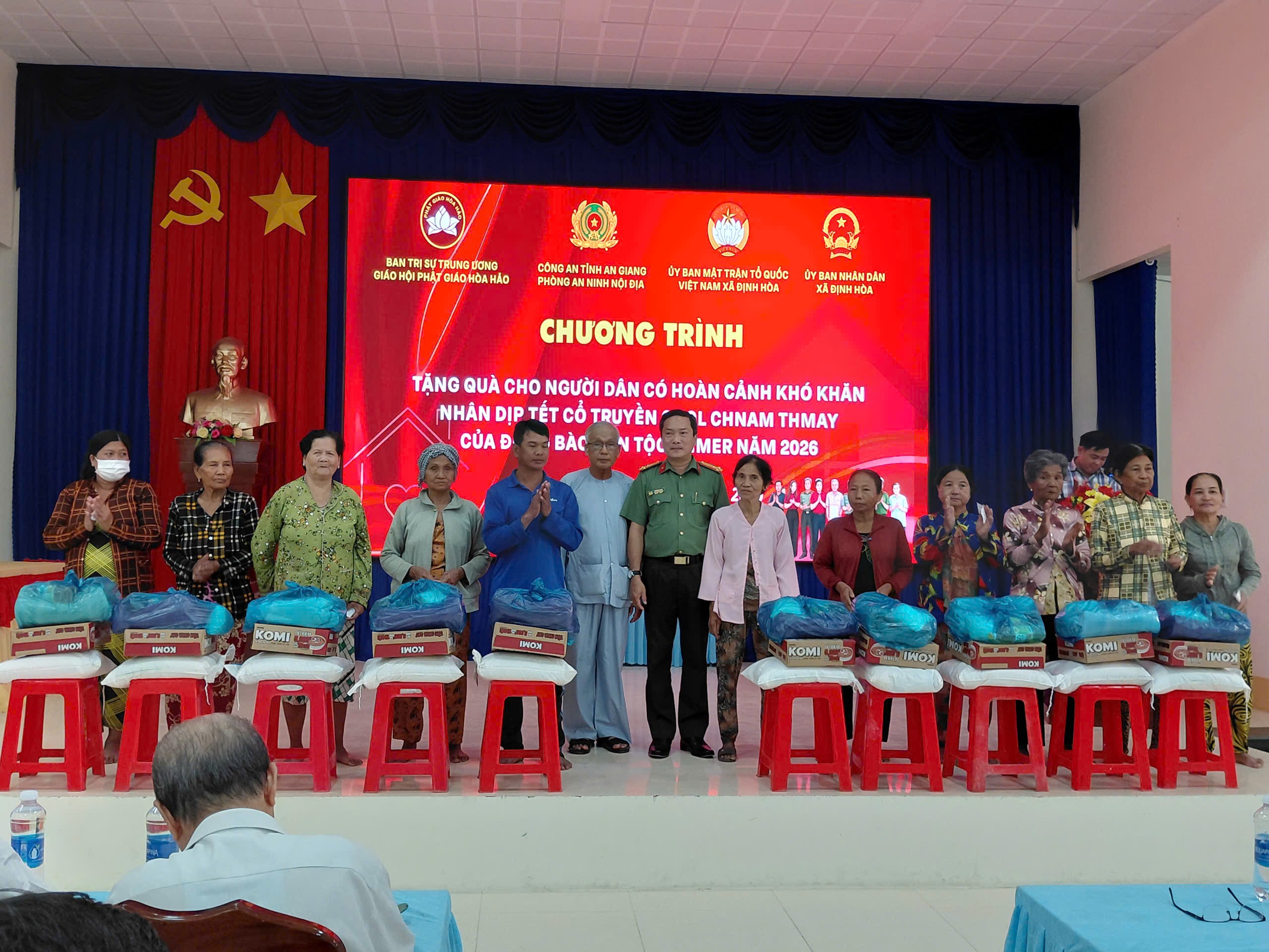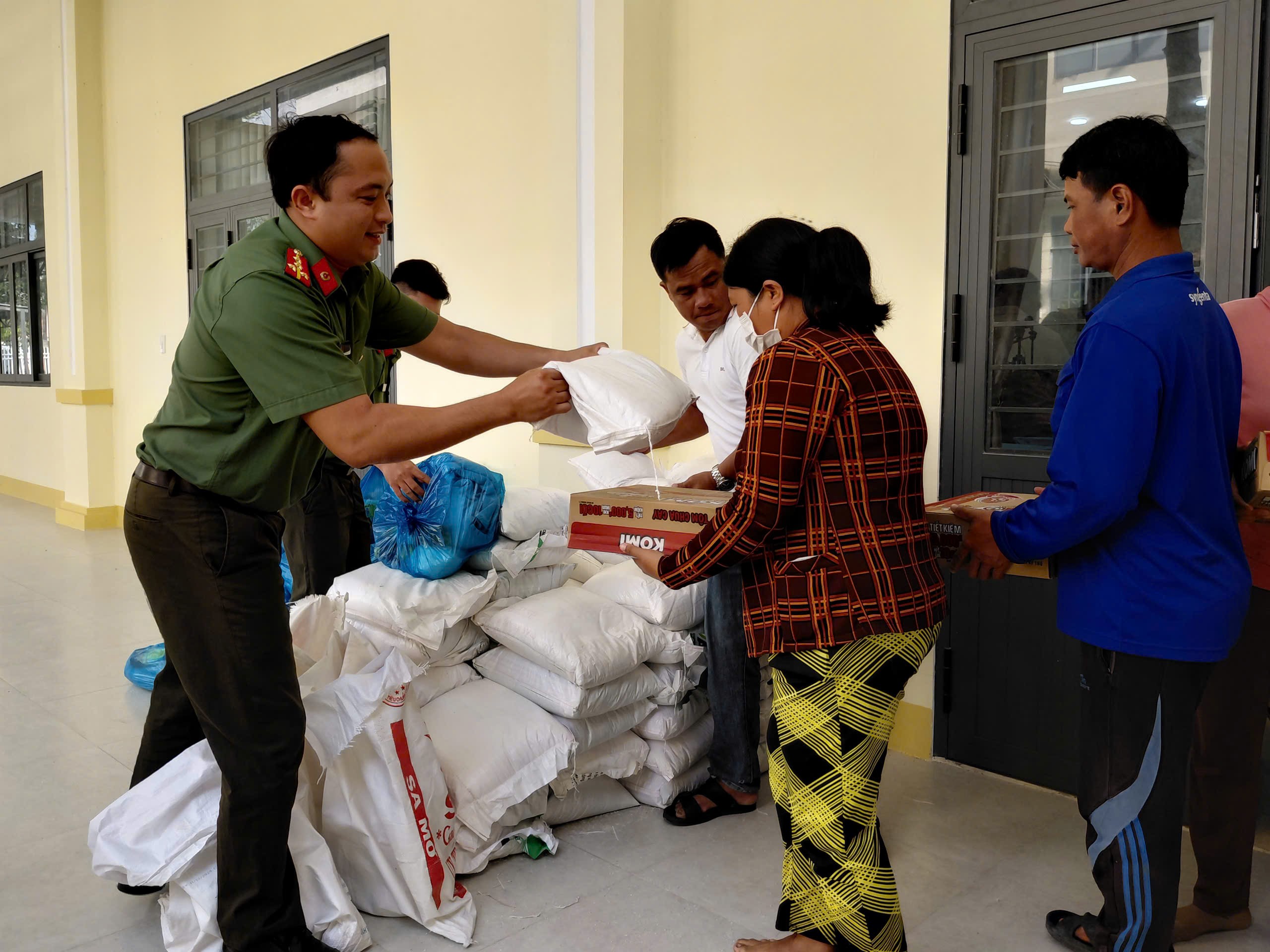 Tại đây, Chi đoàn Phòng Kỹ thuật nghiệp vụ và ngoại tuyến và Phòng An ninh nội địa đã trao tặng 03 phần quà cho lực lượng bảo vệ an ninh trật tự ở cơ sở  và 100 phần quà cho người dân có hoàn cảnh khó khăn trên địa bàn xã Định Hòa, các phần quà bao gồm nhu yếu phẩm (gạo, mì gói, bột ngọt, đường…) với tổng giá trị khoảng 31,5 triệu đồng.