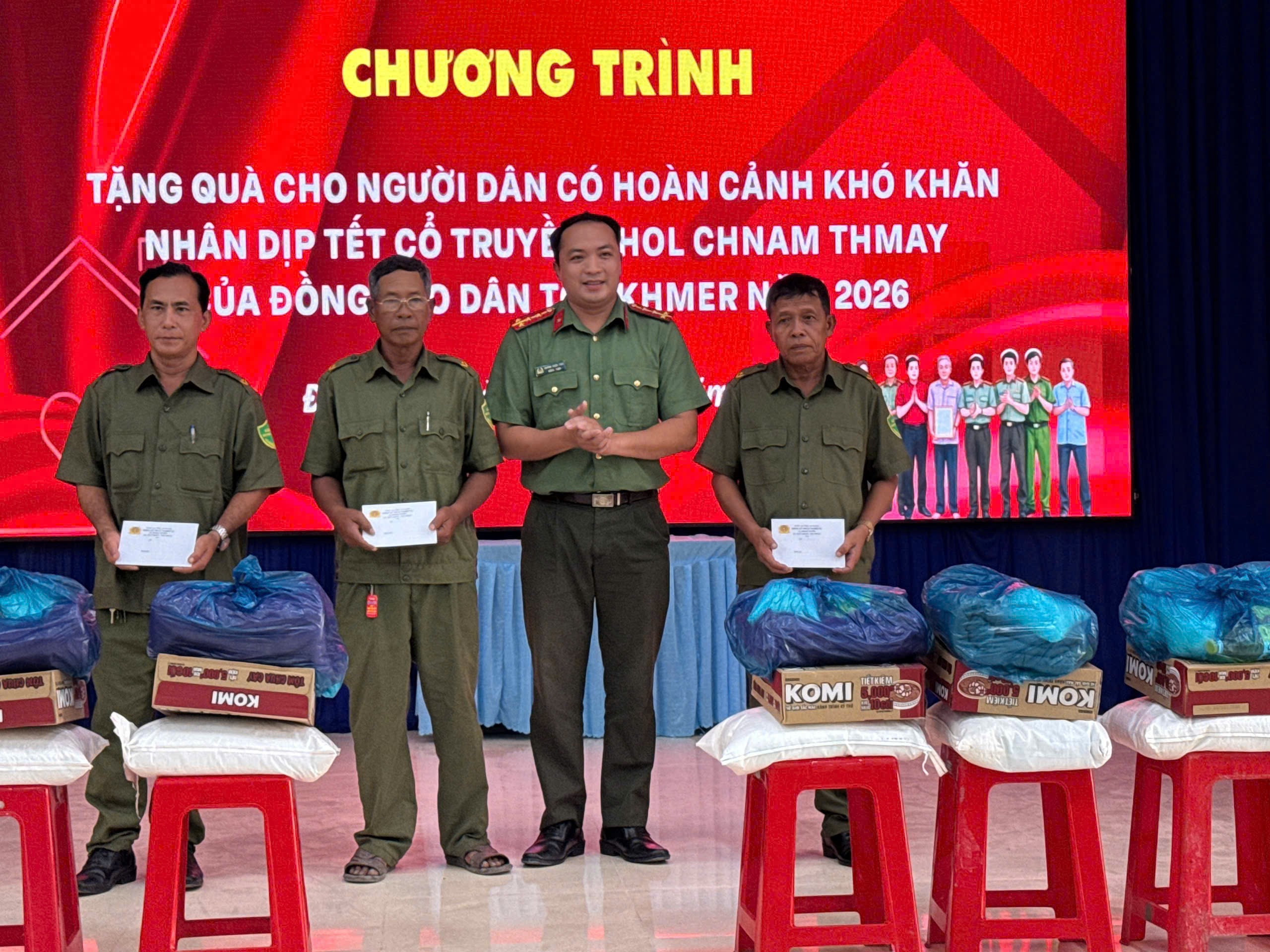 Đồng chí Thượng tá Võ Quốc Đoàn – Phó Trưởng phòng đại diện lãnh đạo trao tặng các phần quà.