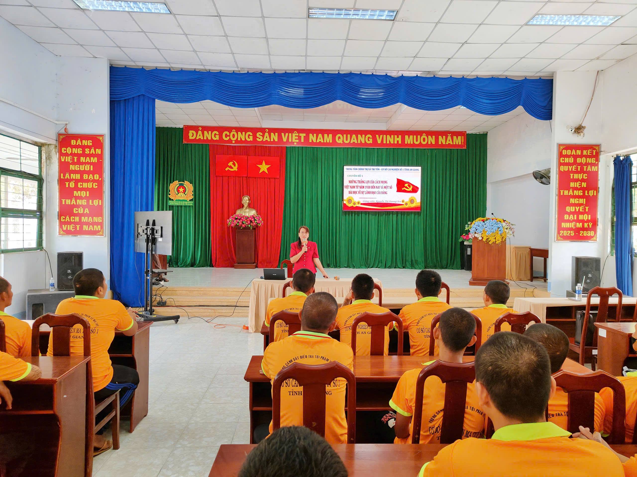 Nhằm nâng cao chất lượng giáo dục chính trị, tư tưởng cho học viên, Cơ sở cai nghiện ma túy số 1 (thuộc Phòng Cảnh sát điều tra tội phạm về ma túy Công an tỉnh An Giang) đã chủ động tham mưu đổi mới nội dung, phương pháp giảng dạy; đồng thời phối hợp với Trung tâm Chính trị xã Tri Tôn tổ chức chương trình “Giảng dạy chính trị” cho học viên cai nghiện ma túy năm 2026 với nhiều nội dung thiết thực, phù hợp thực tiễn.