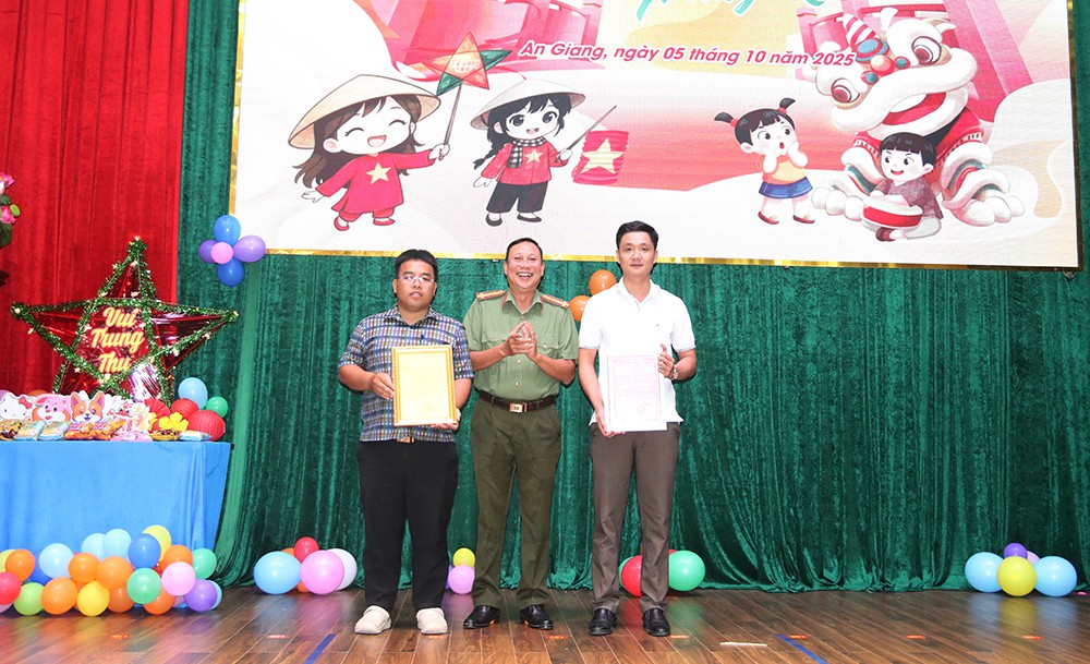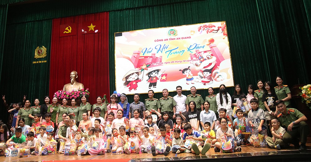 Hòa trong niềm vui rộn ràng của thiếu nhi cả nước, tối ngày 5/10/2025, tại phường Long Xuyên, Công an tỉnh tổ chức chương trình “Đêm hội trăng rằm” cho gần 400 cháu thiếu nhi là con cán bộ, chiến sĩ trong toàn lực lượng.