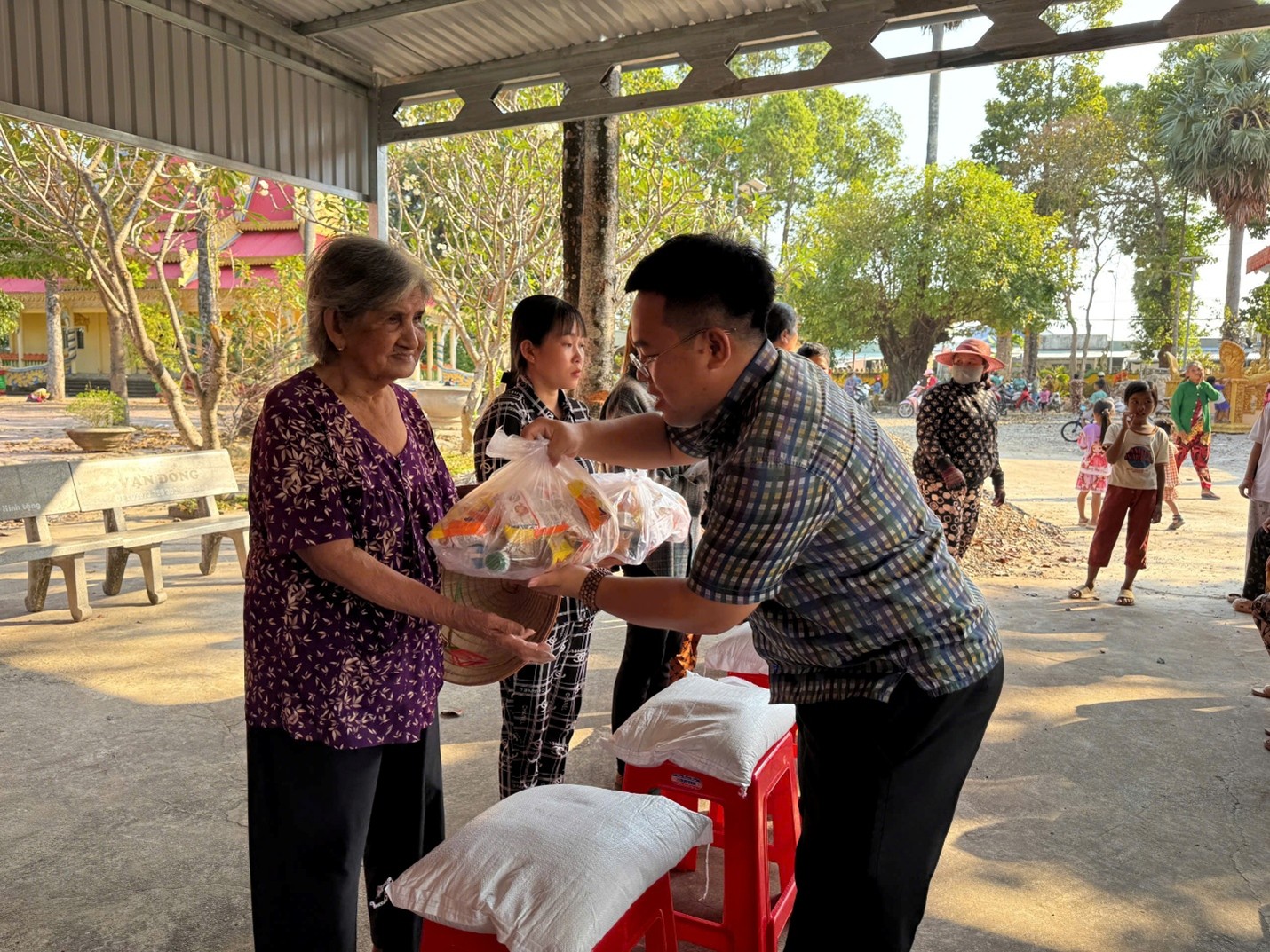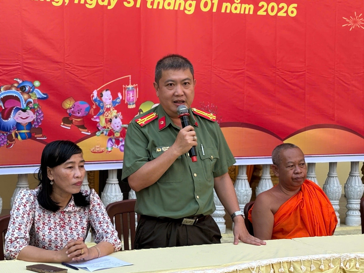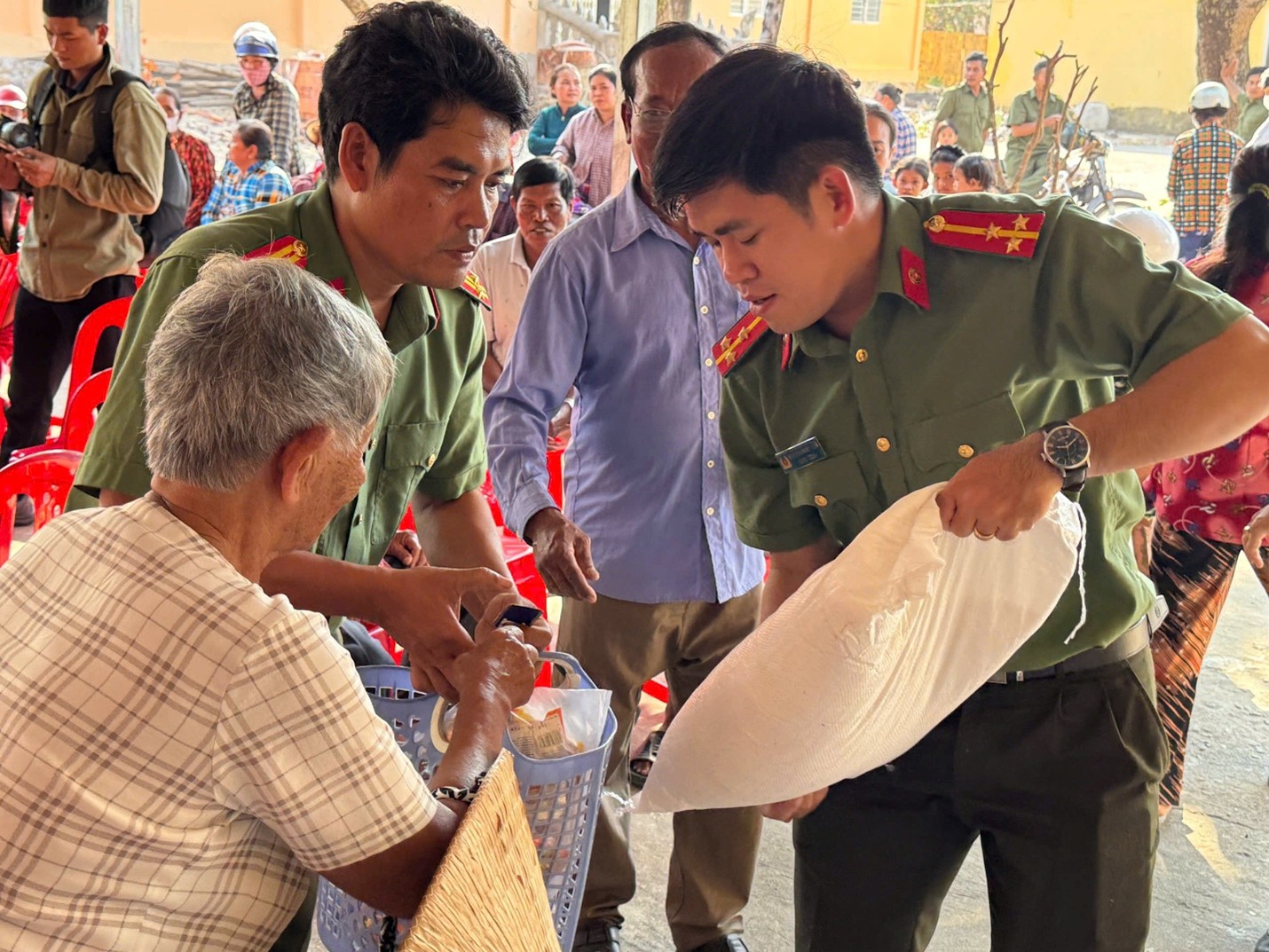Tại chương trình, đã trao tặng 300 suất quà gồm các nhu yếu phẩm cho các hộ gia đình có hoàn cảnh khó khăn, đồng bào dân tộc thiểu số và lực lượng tham gia bảo vệ an ninh, trật tự ở cơ sở trong dịp Tết Nguyên đán Bính Ngọ năm 2026 với tổng kinh phí thực hiện trên 90 triệu đồng được vận động từ các mạnh thường quân. Theo đó, tại chùa Sóc Xoài, xã Mỹ Thuận, đoàn công tác đã trao 125 phần quà cho người dân có hoàn cảnh khó khăn, đồng bào dân tộc thiểu số của xã Mỹ Thuận, xã Sơn Kiên và trao 25 phần quà hỗ trợ bếp ăn của Trường Trung cấp Phật học Nam tông Khmer (chùa Sóc Xoài). Tại chùa Ba Trại, xã Kiên Lương, 150 phần quà được trao cho các hộ gia đình khó khăn và lực lượng tham gia bảo vệ an ninh, trật tự ở cơ sở trên địa bàn xã.